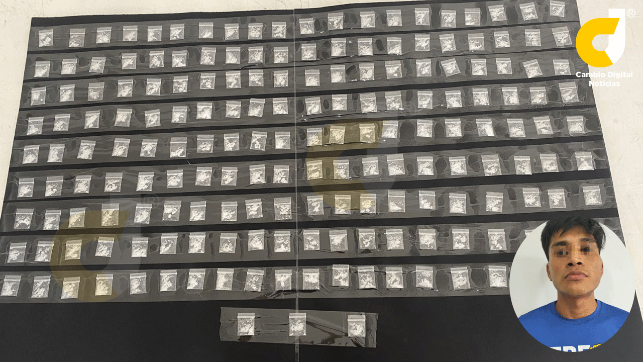 Al realizar una revisión corporal, le fueron aseguradas 183 dosis de cristal en el interior de una mochila, siendo detenido y trasladado a las oficinas de la corporación policiaca.
