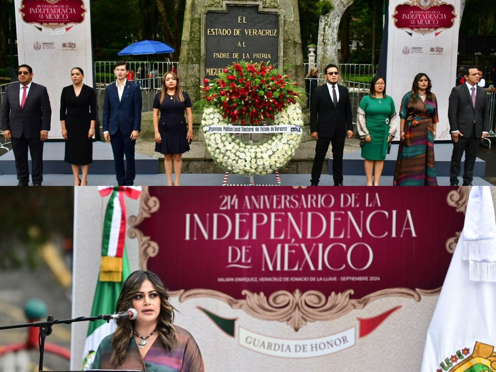 Xalapa, Ver.- En conmemoración del 214 aniversario de la Independencia de México, Consejeras y Consejeros Electorales del Organismo Público Local Electoral del Estado de Veracruz (OPLE Veracruz) montaron la guardia de honor frente al monumento de Miguel Hidalgo y Costilla, para rendir homenaje a las heroínas y los héroes que contribuyeron a la construcción del país.