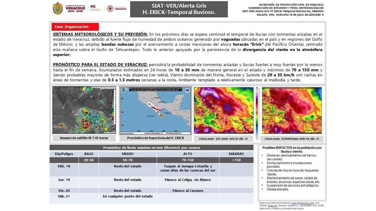 Alerta Gris en fase de organización del SIAT-VER por lluvias