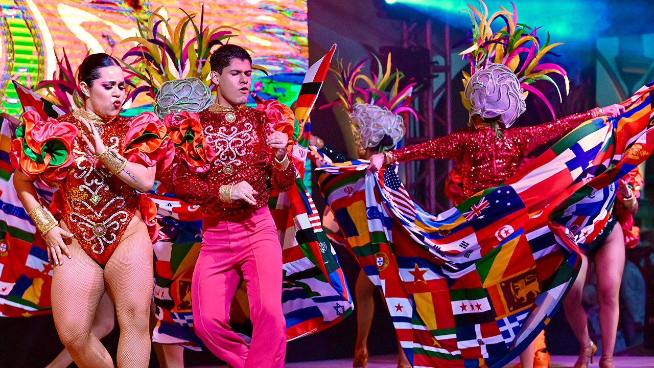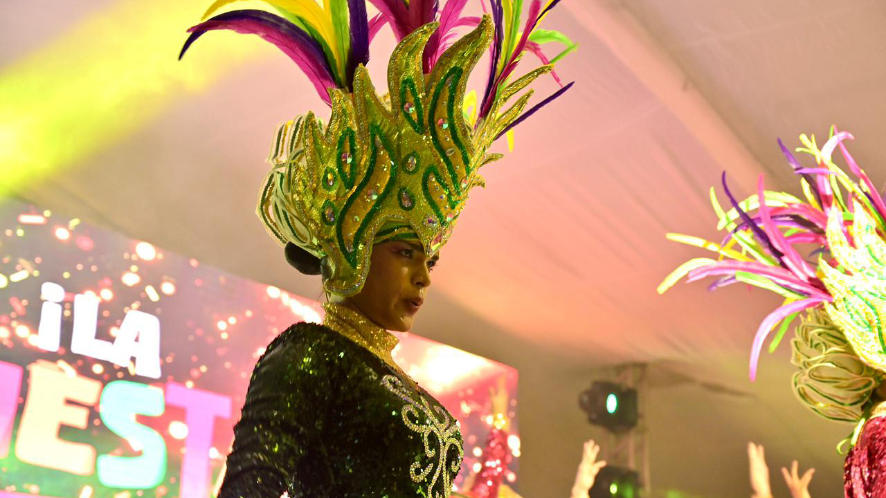 Sus palabras se mezclaron con el viento y con los aplausos. Detrás, un grupo de bailarines llenó el espacio de color, ritmo y fuego. Sus cuerpos contaban una historia de puerto y tambor, de risas que no se apagan, de corazones que laten al compás de una batucada infinita.