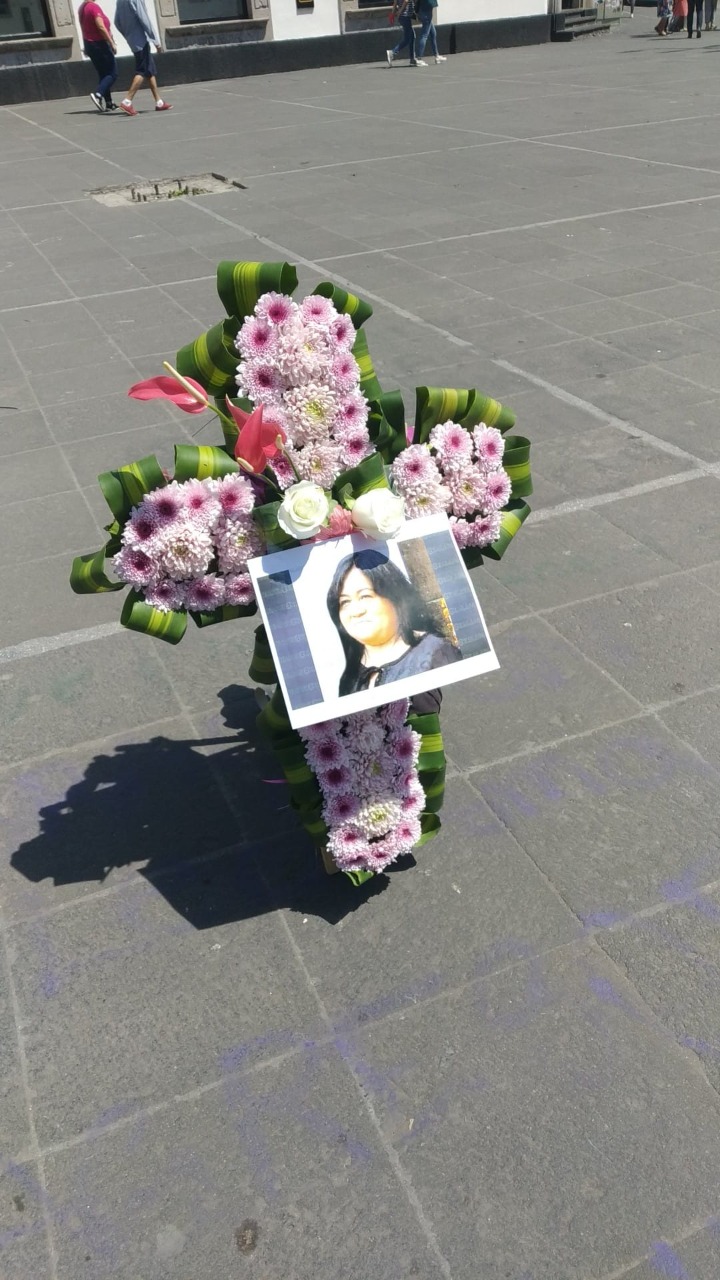 En Xalapa, la comunicadora Livia Díaz colocó un arreglo floral con la fotografía de María Elena Ferral en la Plaza Lerdo, frente a Palacio de Gobierno.