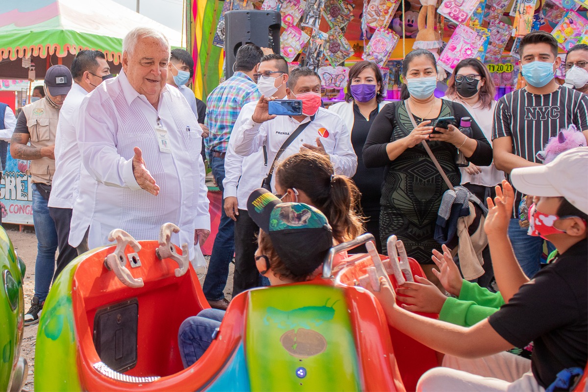 Poza Rica, Ver.- En compañía del cuerpo de Cabildo, el alcalde de Poza Rica, Fernando Remes Garza, acudió a la inauguración de la función gratuita de juegos mecánicos.