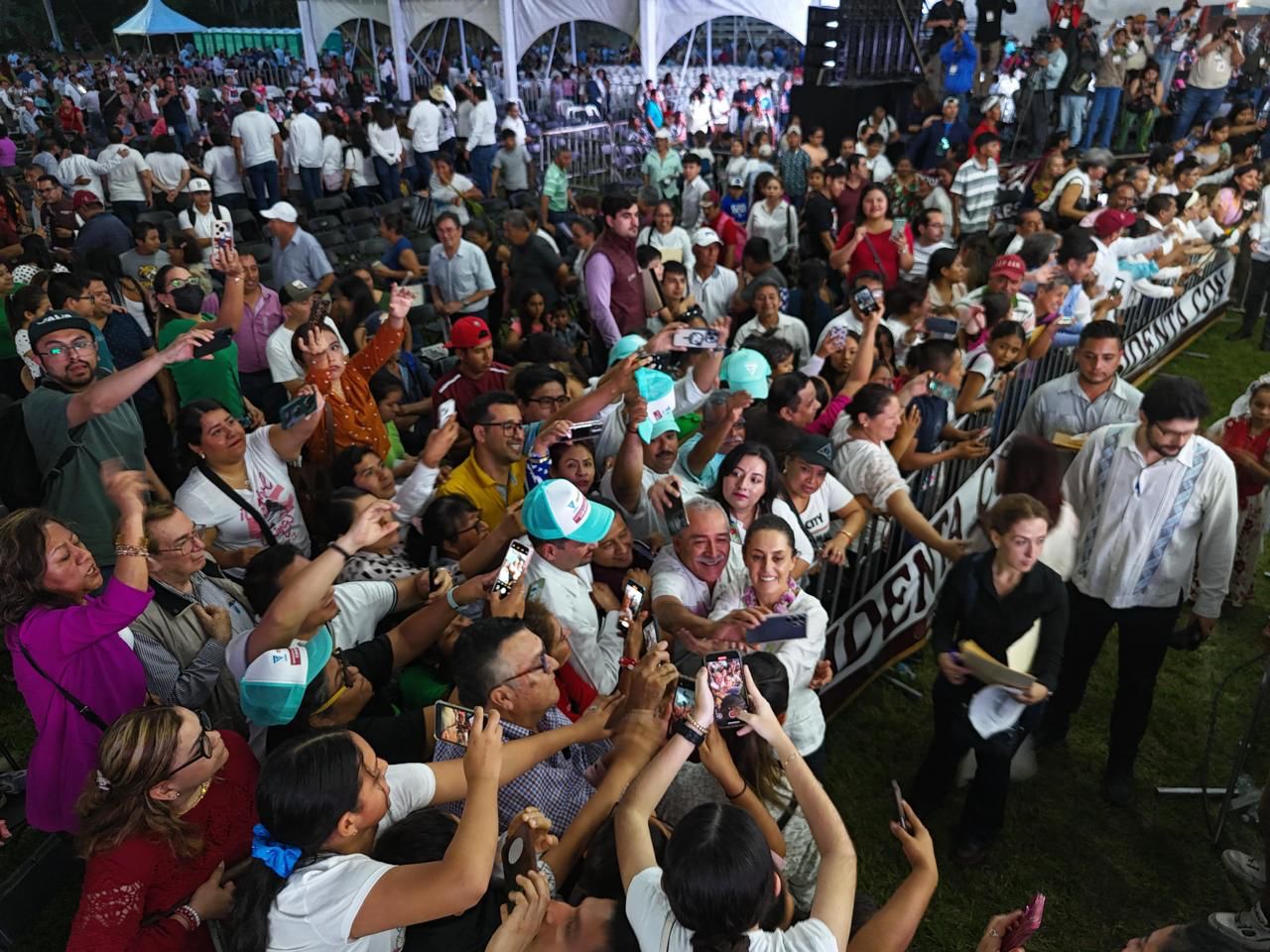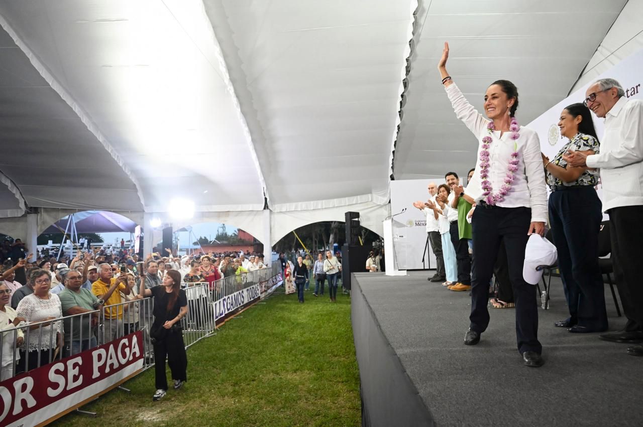 “Esto es parte de la Cuarta Transformación, que está en marcha en México, la Presidenta acude a este rinconcito de Veracruz con la gente que nos ha apoyado, que ha estado firme, gente trabajadora, gente de bien y que con mucho gusto acude aquí y voltea a Veracruz como voltea a todas partes del país”, señaló.