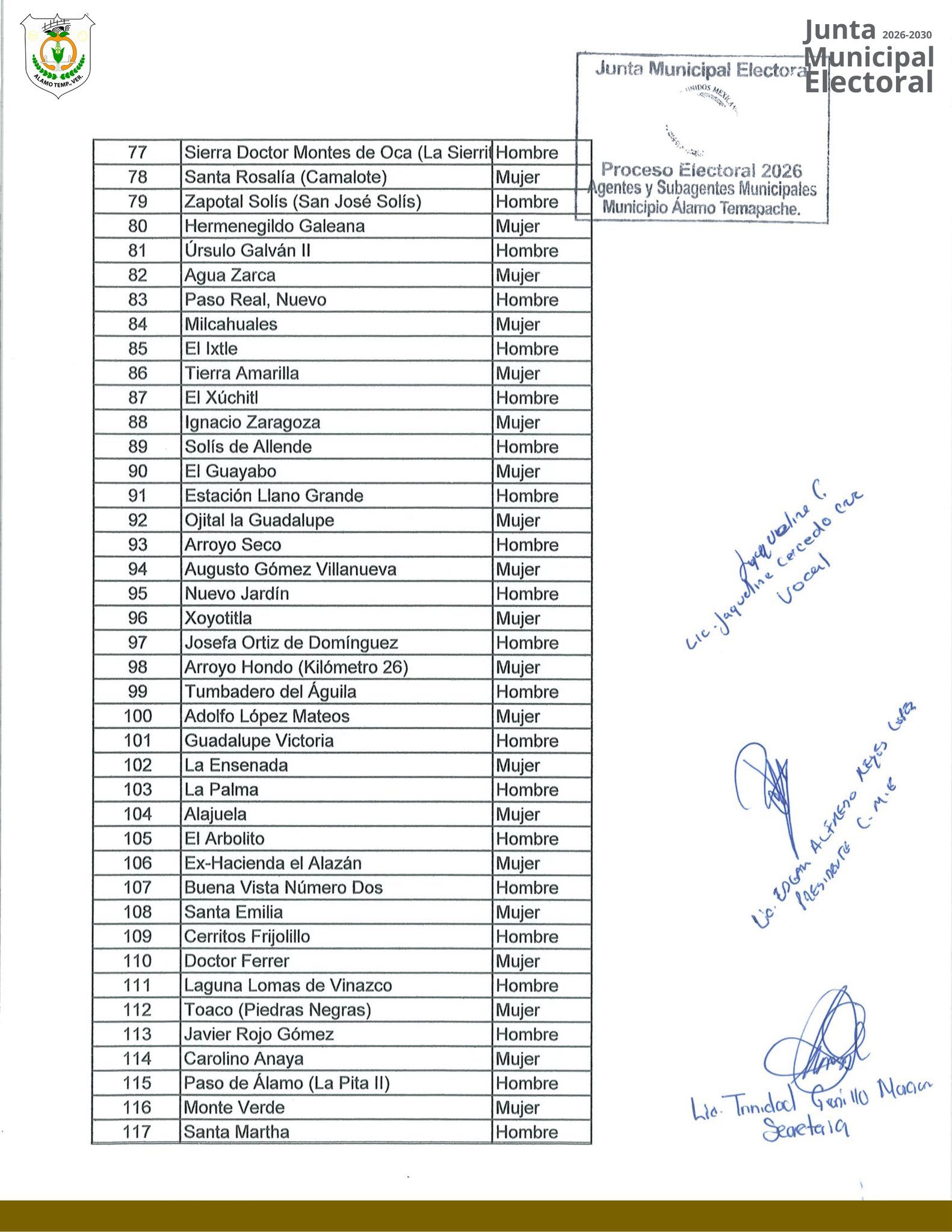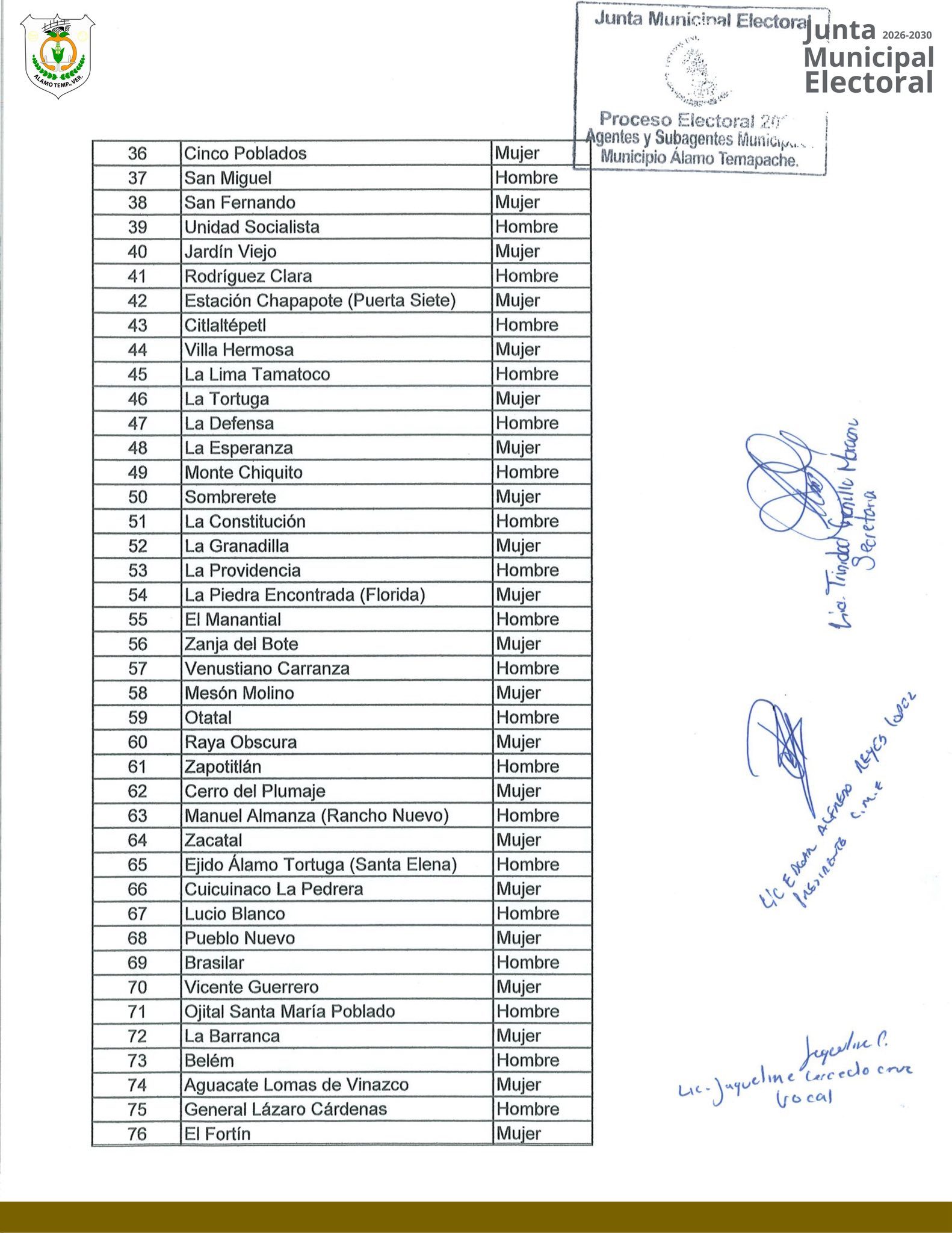 Álamo, Ver.- El Gobierno Municipal que preside el alcalde Pepe Arenas invita a la ciudadanía de todas las comunidades a participar en la renovación de agentes y subagentes municipales para el período 2026/2030; el registro de candidatos comenzará el lunes 2 de marzo y culminará el sábado 6 del mismo mes.