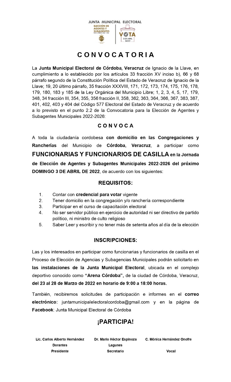 Abre Córdoba convocatoria para funcionarios de casilla en elección de agentes y subagentes