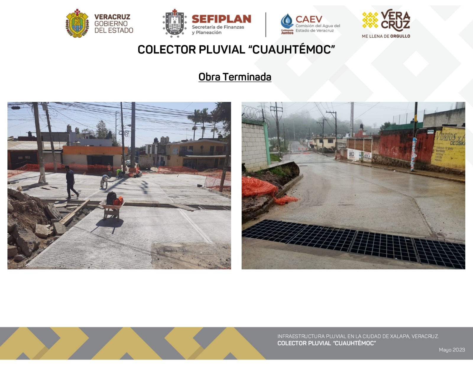 Igualmente el Cuauhtémoc, que resuelve los anegamientos en Lomas de Casa Blanca, Huizachal, El Arroyo, Unidad y Trabajo, Jardines del Castillo, Bugambilias, El Sumidero, El Tanque, 26 de Agosto y Las Minas; además del Coatzacoalcos, que evitará afectaciones en la Carolino Anaya, Tabasco, Rubén Pabello Acosta, Los Prados, José Vasconcelos y Culturas Mexicanas.