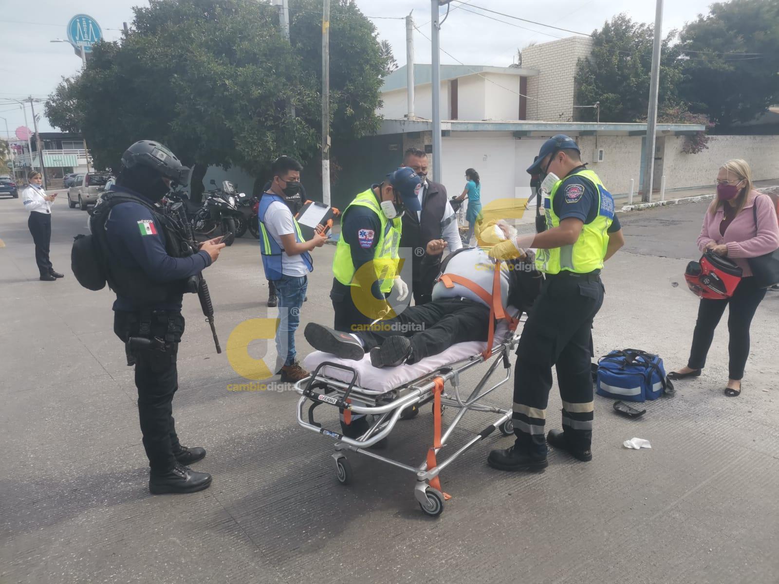 El motociclista fue trasladado por paramédicos de Bomberos Conurbados para su atención médica y el conductor del vehículo Spark aparentemente se dio a la fuga dejando el auto abandonado.