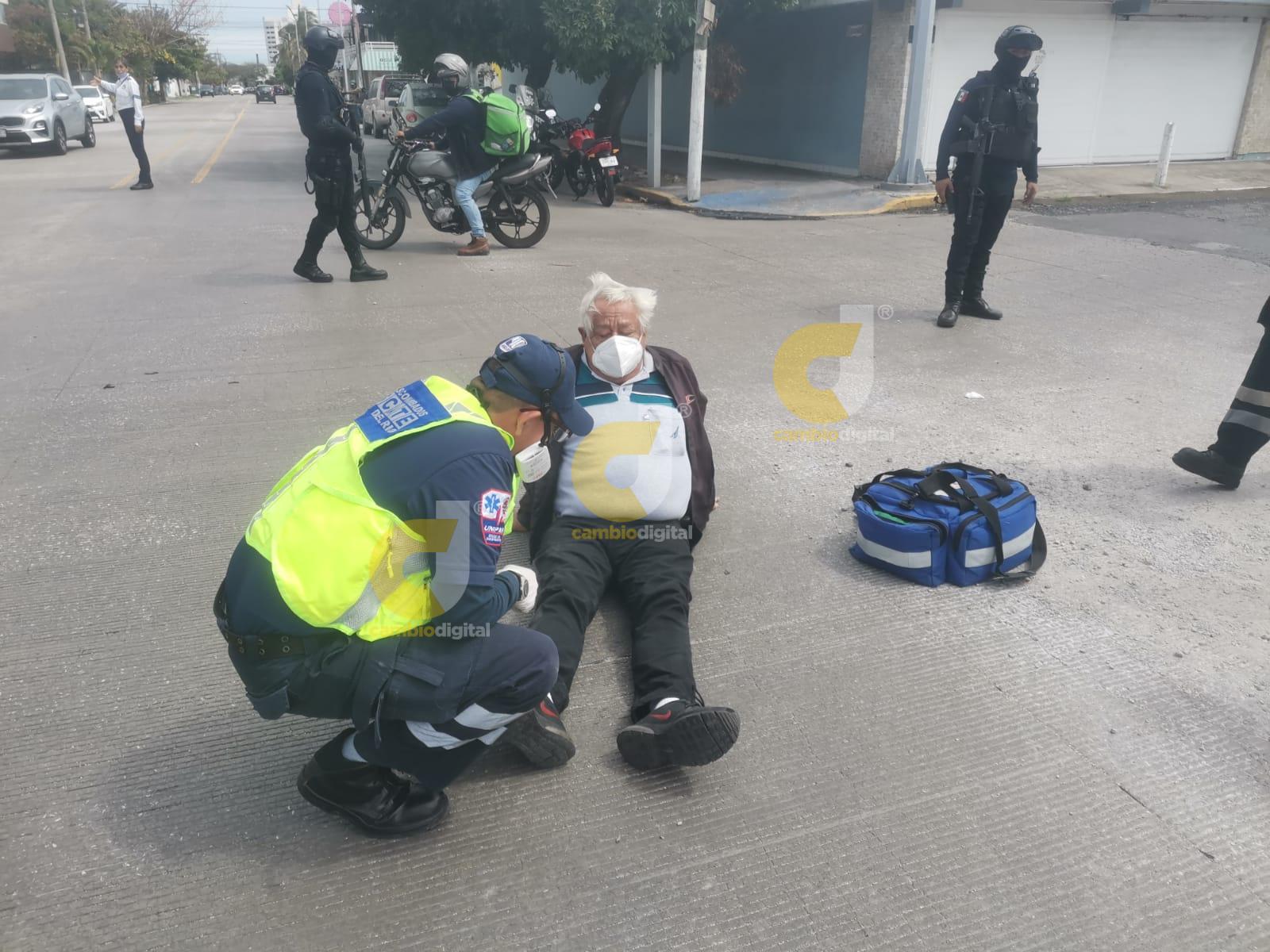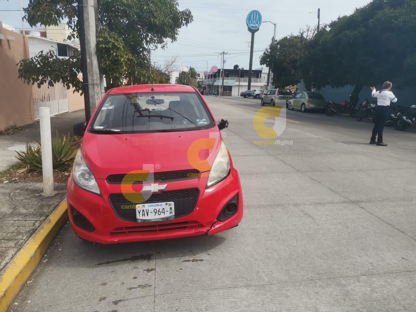 Boca del Río, Ver.- La tarde de este miércoles se registró un accidente en el fraccionamiento Virginia de Boca del Río, sobre la calle Jacarandas y Antón de Alaminos, en el cual un motociclista que circulaba detrás del vehículo Spark, al intentar rebasarlo impactó al vehículo cayéndose, por lo cual sufrió una lesión en la espalda.