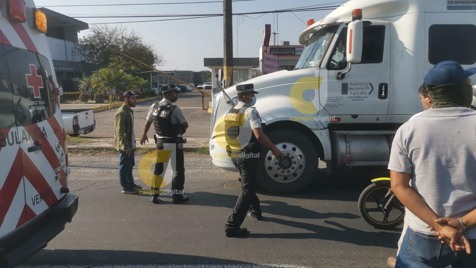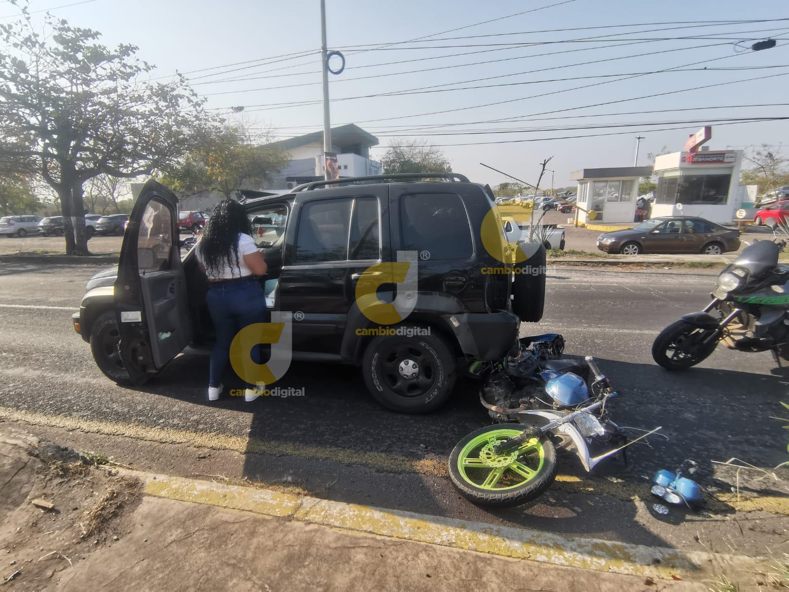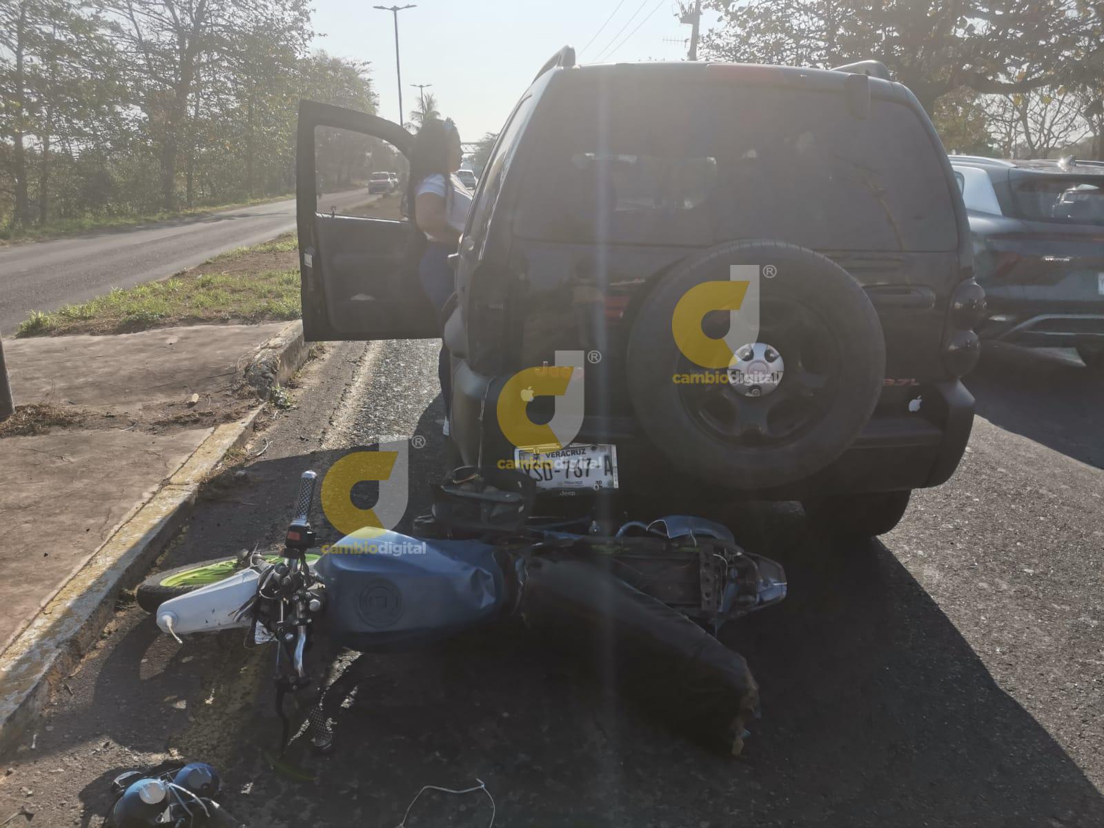 Veracruz, Ver.- Un motociclista derrapó y se impactó este lunes contra una camioneta jeep sobre la carretera Veracruz-Xalapa, tras el tráfico la camioneta conducía a baja velocidad a la altura de la Fiscalía con dirección a Cabeza Olmeca