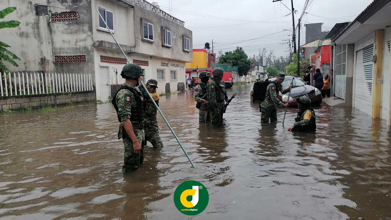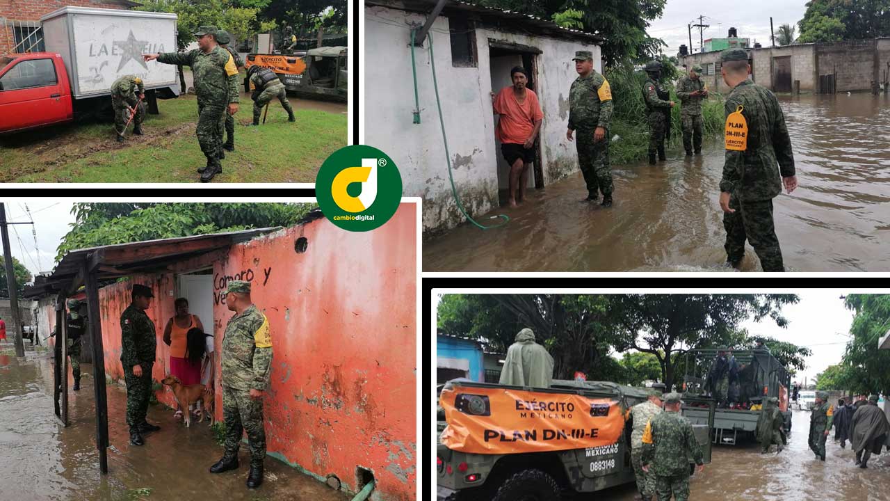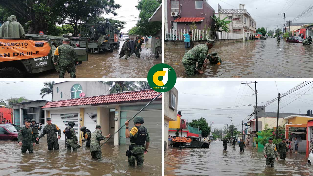 Veracruz, Ver.- El Ejército Mexicano activó en Veracruz el Plan DN-III-E, en el municipio de Veracruz, para apoyar a la población afectada por las lluvias e inundaciones.