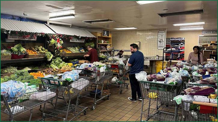 El World Harvest Food Bank de Venice ha abierto sus puertas para ayudar a los miembros del Sindicato de Actores (SAG) y del Sindicato de Guionistas (WGA), que deben mostrar sus carnés del sindicato para recibir una bolsa de alimentos, incluidos productos frescos.