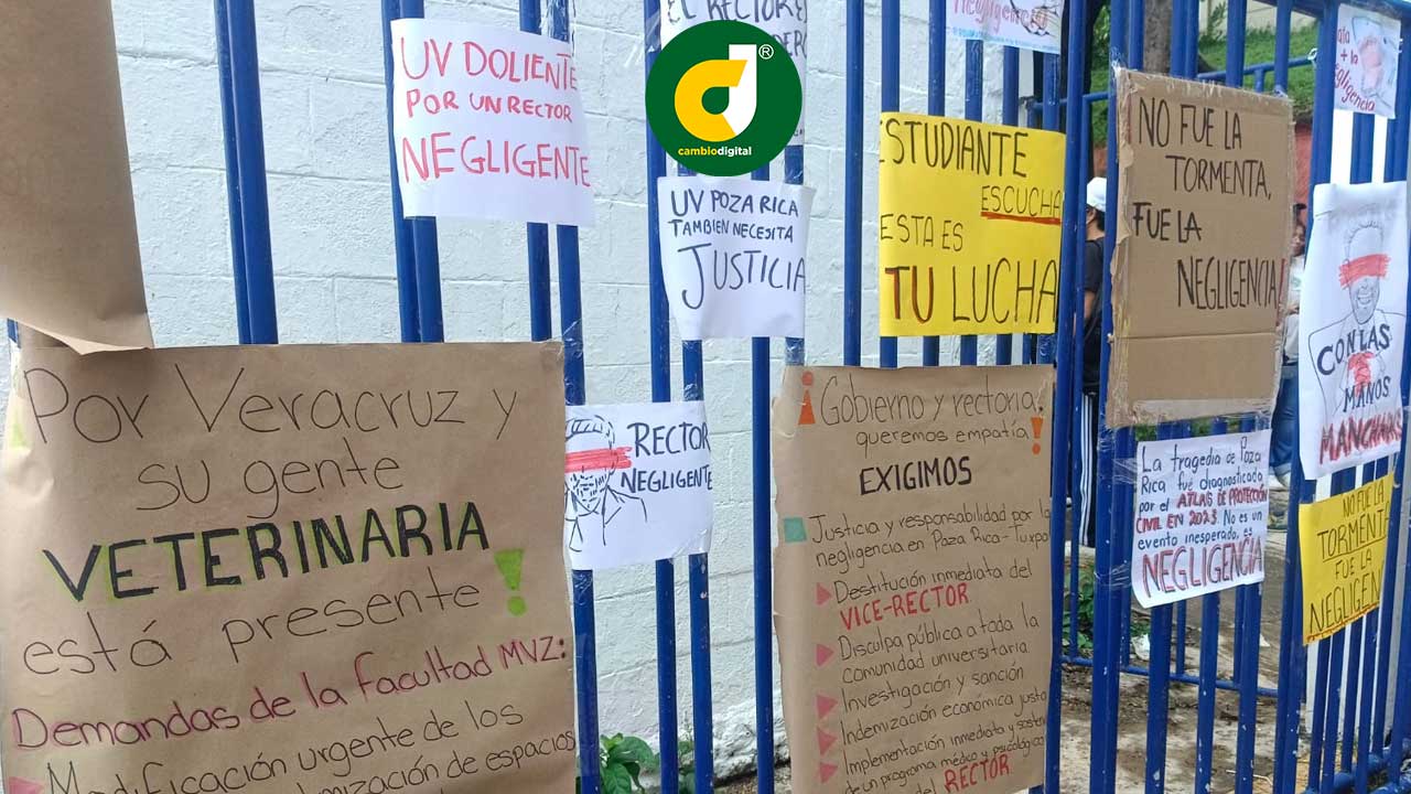 En el caso de la facultad de Veterinaria y Zootecnia en el puerto de Veracruz, los estudiantes se encuentran bloqueando la entrada del plantel educativo con una cinta, en la que han colgado consignas y exigencias.
