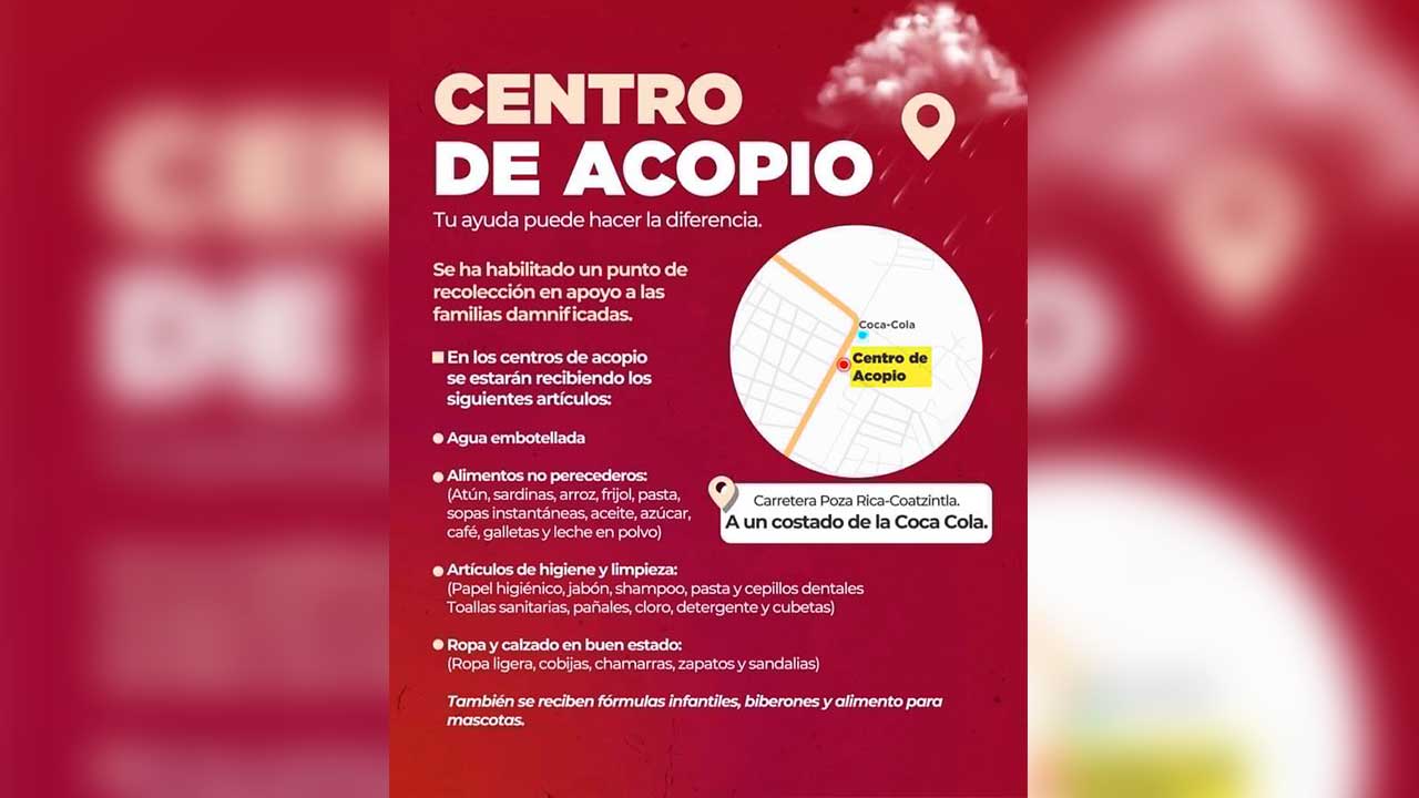 Poza Rica, Ver. – La alcaldesa electa de Poza Rica, Adanely Rodríguez, informó que continúa activo el centro de acopio en apoyo a las familias que atraviesan momentos difíciles tras las recientes afectaciones en la ciudad.