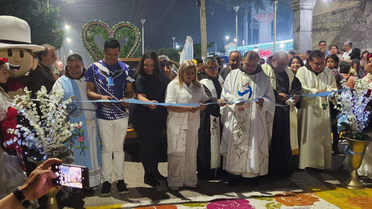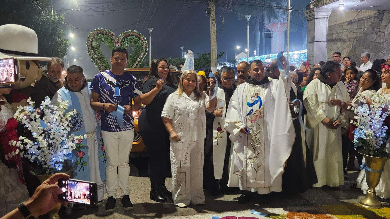 Tlalixcoyan, Ver.- La alcaldesa electa, Adriana Lagunes Sánchez, asistió a los tradicionales tapetes en honor a la Virgen de la Inmaculada Concepción en la comunidad de Piedras Negras, donde reconoció el esfuerzo y talento de las familias que participan en esta celebración.