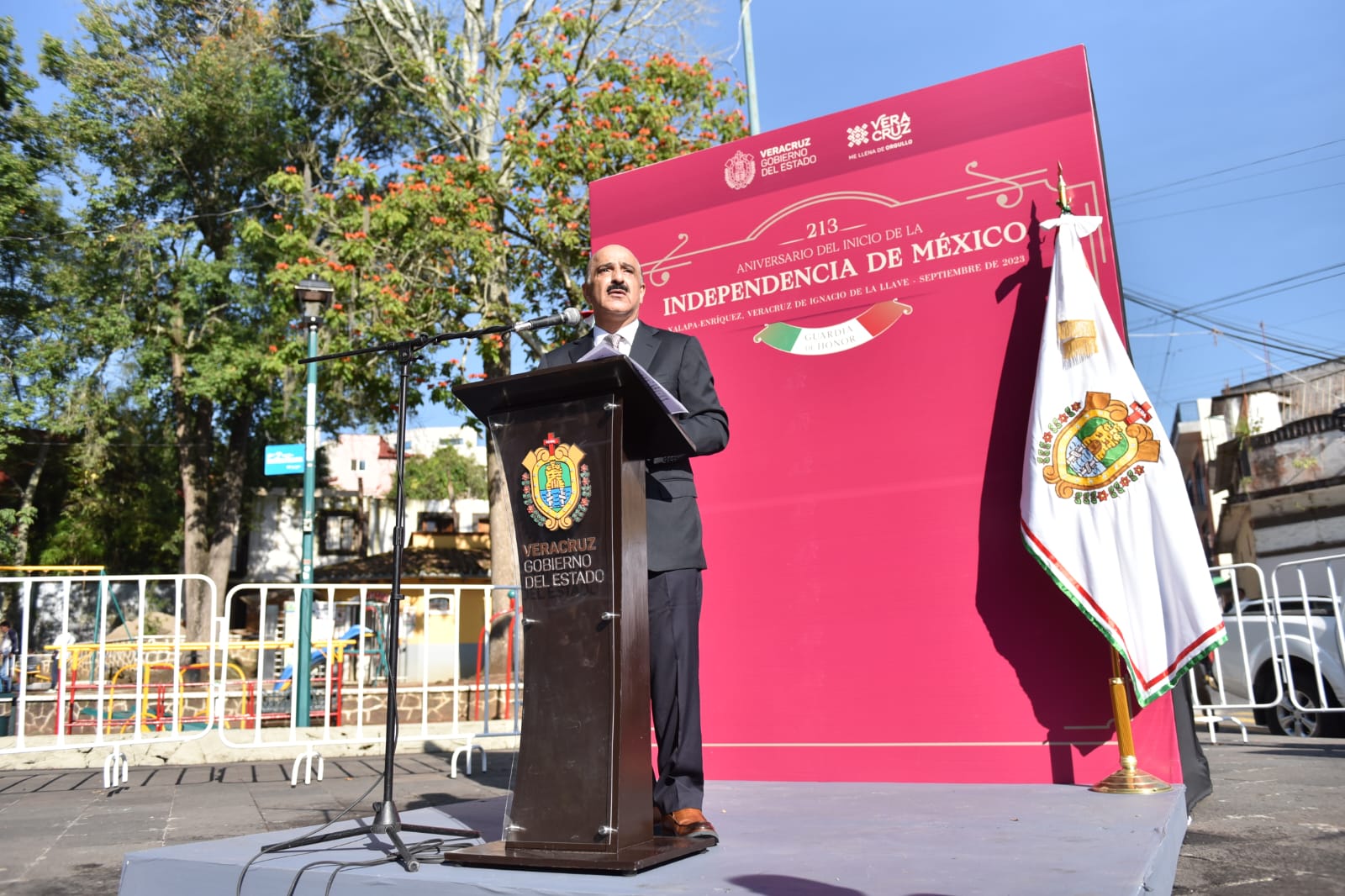 Xalapa, Ver.- Al conmemorar la gesta de Independencia, los mexicanos reafirmamos los valores de soberanía, justicia e igualdad, y ante los retos y desafíos de nuestro país, no podemos defraudar a las mujeres y hombres que dieron la vida por nuestra libertad, afirmó el presidente municipal Ricardo Ahued Bardahuil, durante la ceremonia de Guardia de Honor por el 213 aniversario del inicio de la Independencia de México.