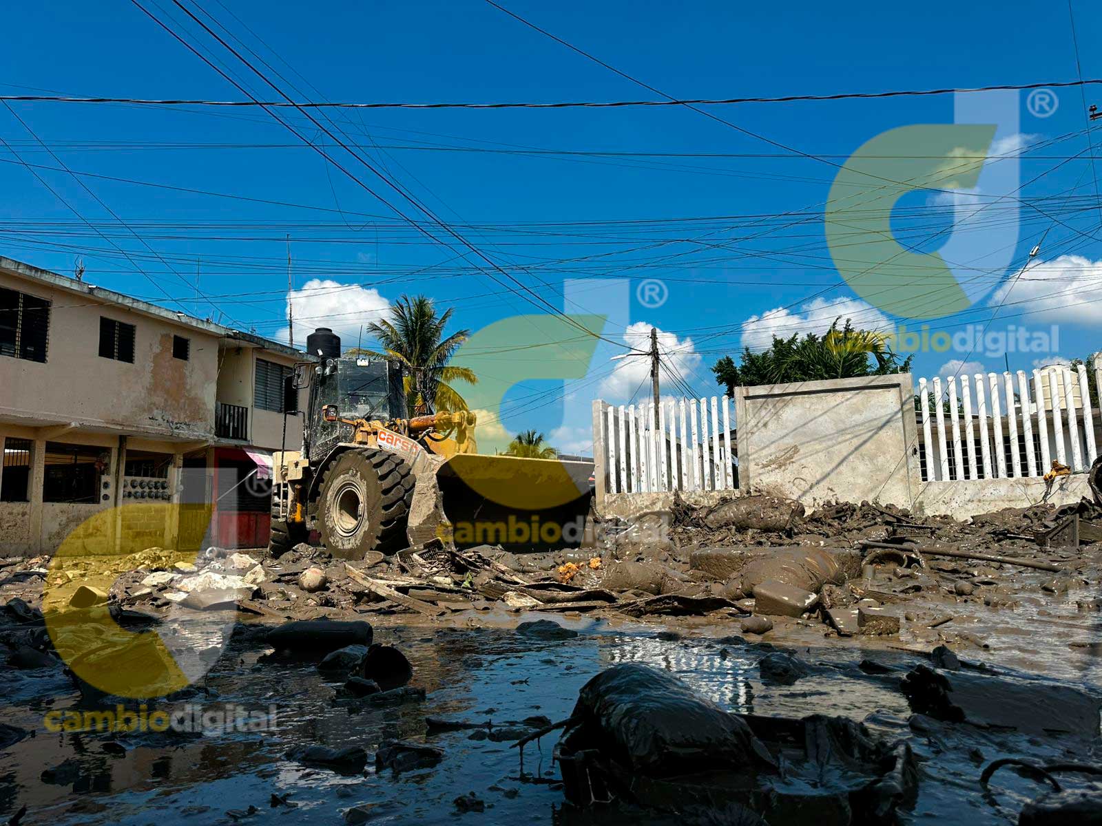 Álamo, Ver.- Avanzan las labores de limpieza tras las inundaciones registradas en el municipio veracruzano de Álamo Temapache, participan ciudadanía y fuerzas armadas.