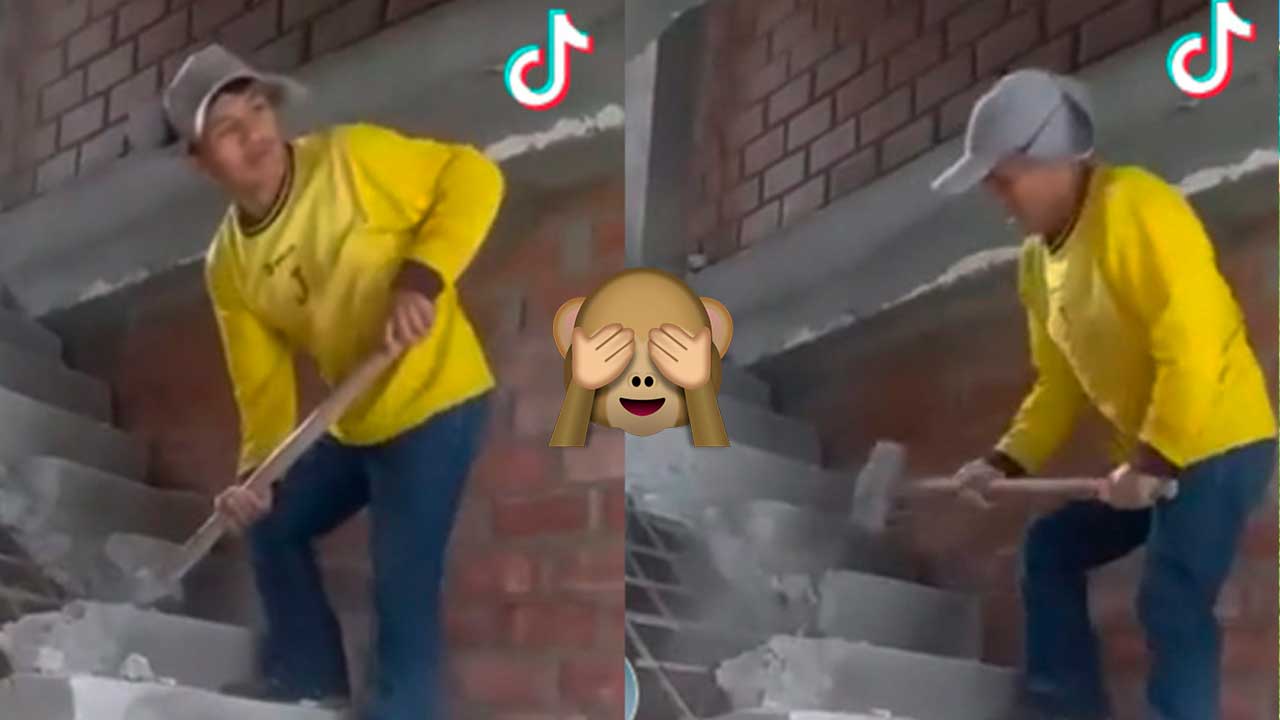 Una persona le ruega al albañil que da golpes con un mazo a la escalera, que se detenga. “Maestro no rompas la escalera pues, ya, pues, maestro”, insiste el que parece ser el encargado de la obra.