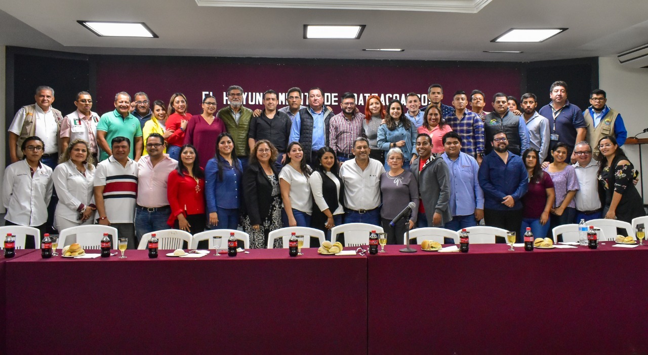 Reunidos en Sala de Cabildo el funcionario municipal acompañado de la directora de Comunicación Uma Freya Cortés Román, y de su cuerpo edilicio, también les compartió sus buenos deseos para el 2023, preponderando la salud y armonía.