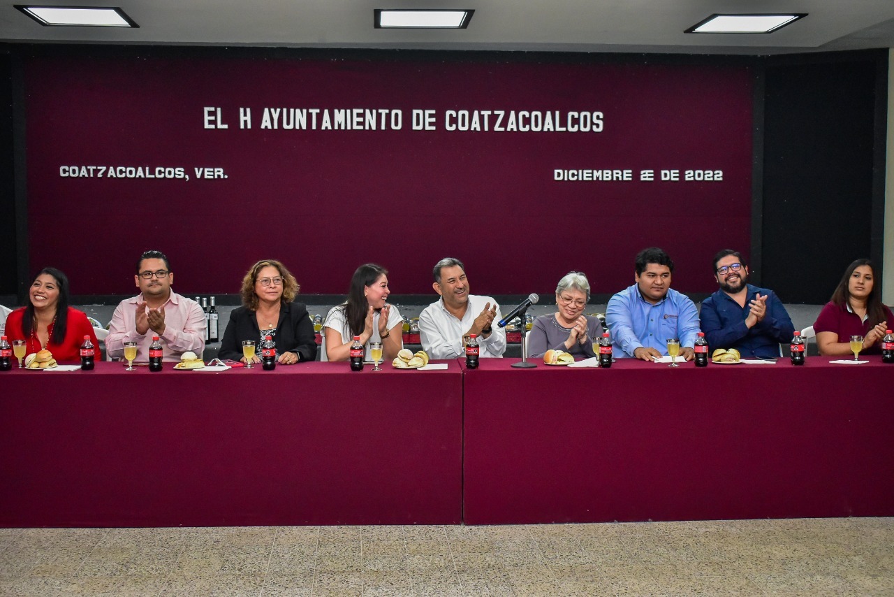 Coatzacoalcos, Ver.- El presidente municipal Amado Jesús Cruz Malpica, realizó el tradicional brindis de Navidad con representantes de diversos medios de comunicación de Coatzacoalcos reconociendo su importante labor, así como lo valiosa que es su profesión en la sociedad y para su administración.