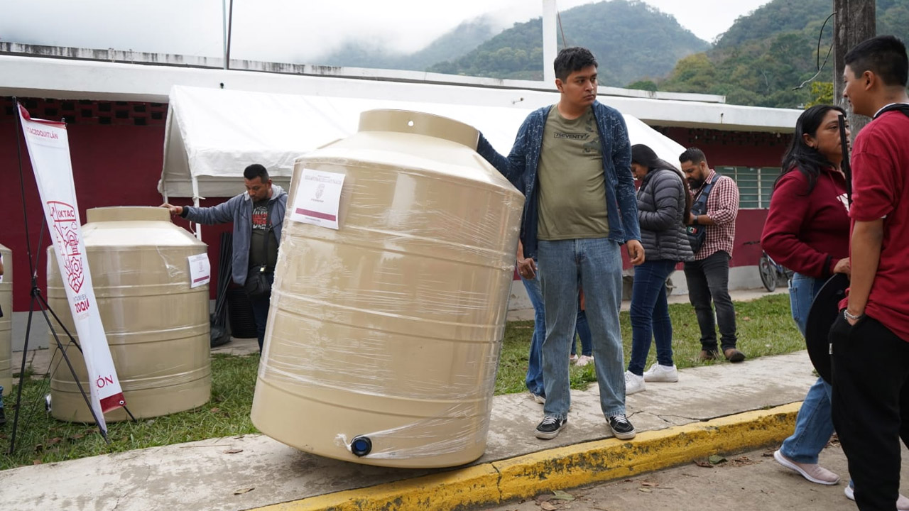 Alcalde José Luis Cortés supervisa entrega de tinacos en Campo Chico