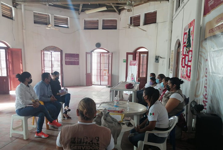 Tlacotalpan, Ver.- El alcalde de Tlacotalpan, Ing. Luis Medina Aguirre, la síndica, Elvira Madrigal Brito y la regidora segunda, Agueda Rodríguez Aguirre se reunieron con servidores de la nación para dar seguimiento a los programas de “Jóvenes Construyendo el Futuro”, apoyo a adultos mayores y todos aquellos programas que son de gran beneficio para la población.