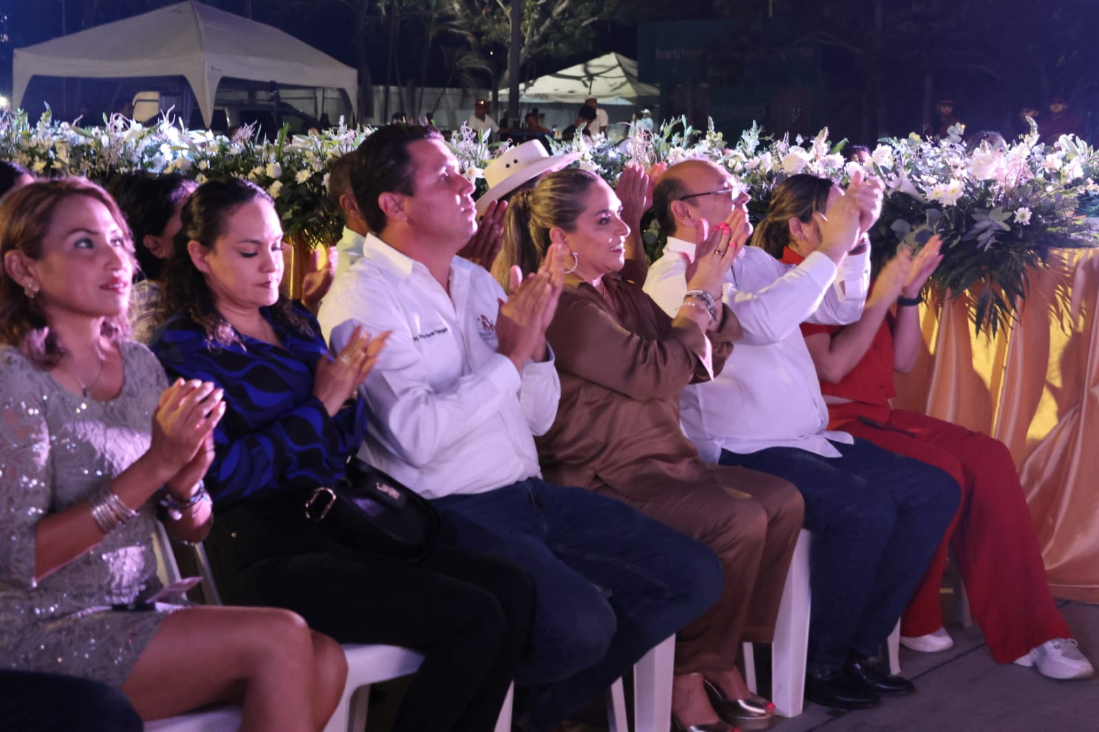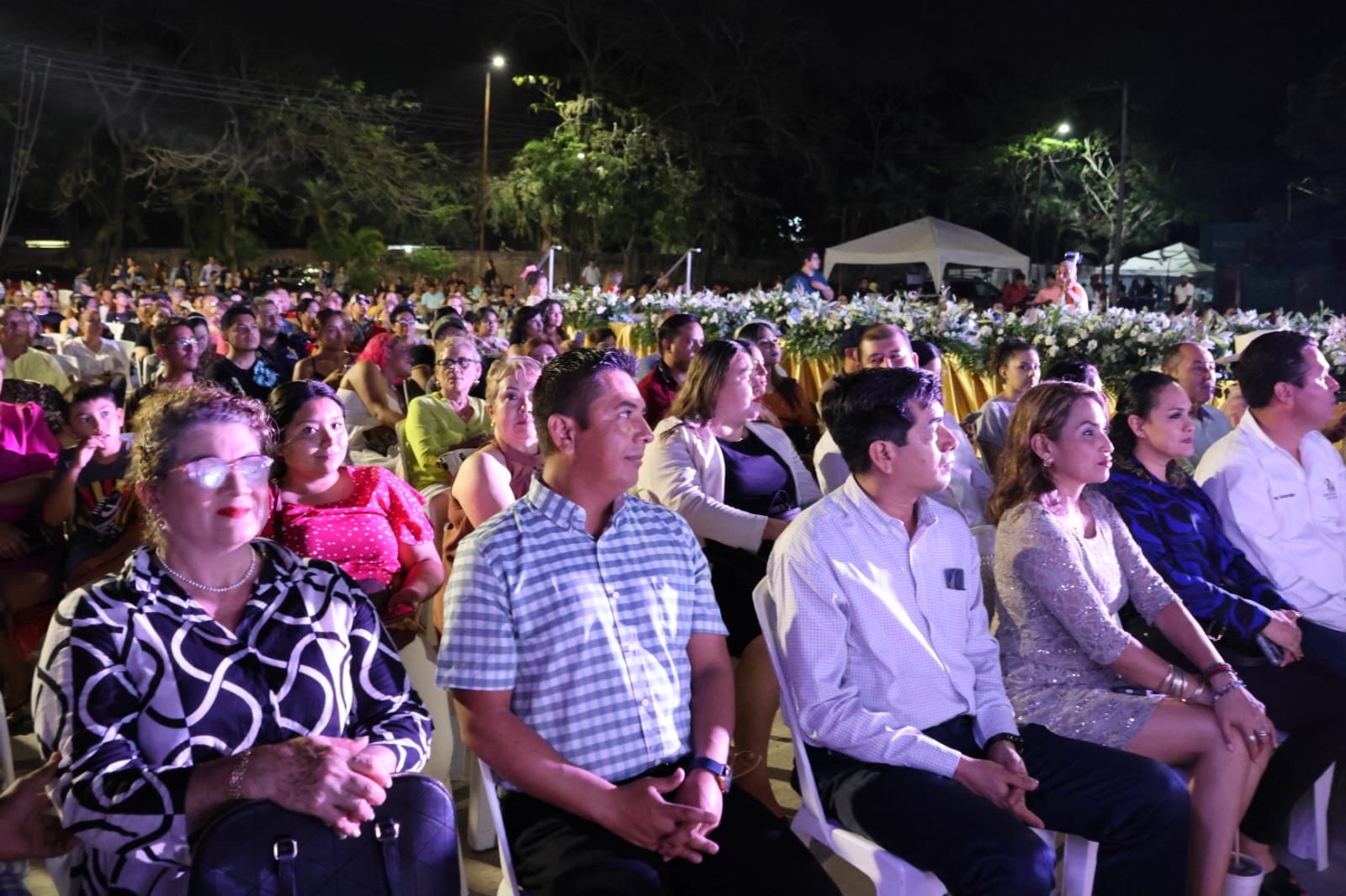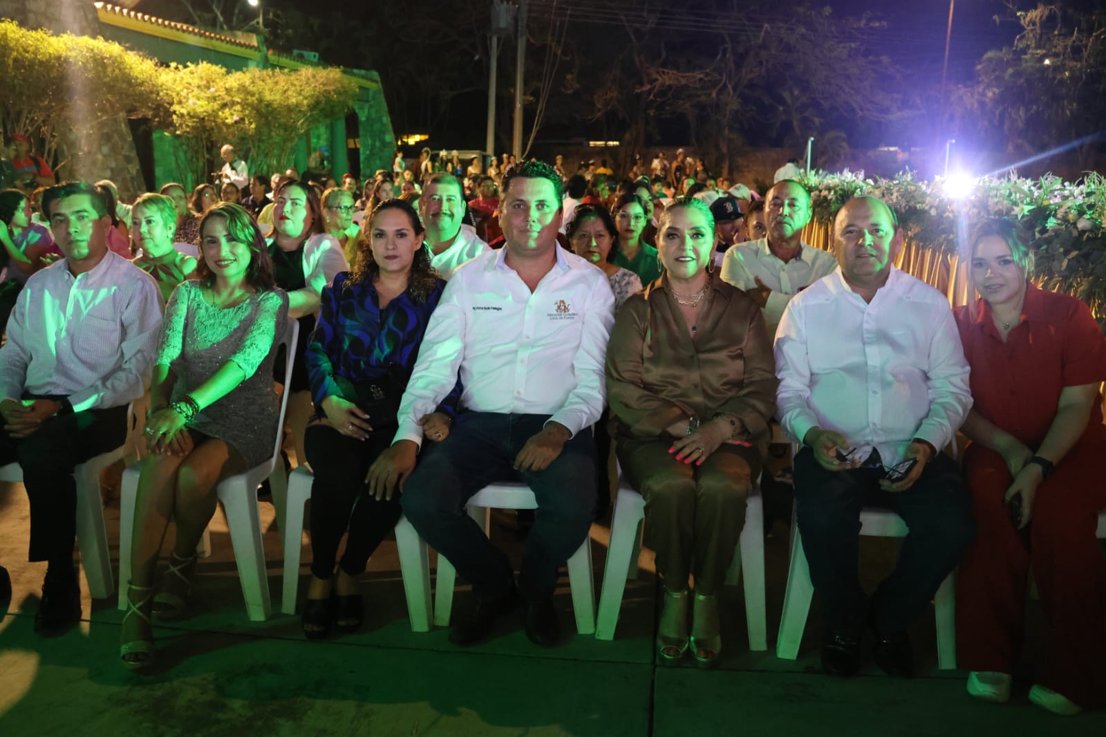 En las instalaciones del teatro del pueblo, el alcalde MVZ Óscar Guzmán de Paz acompañado de su esposa Maritza González Ortiz presidenta del sistema DIF, llevaron a cabo la coronación de la reina María Aburto que estuvo acompañada de embajadoras de las diferentes instituciones educativas del municipio.