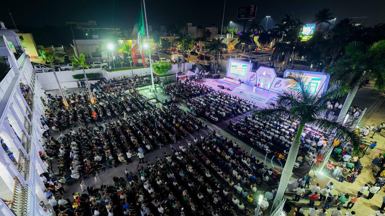 *Con una Plaza Cívica Benito Juárez llena, el edil boqueño destacó que durante estos cuatro años, Boca del Río consolidó su liderazgo como la ciudad más próspera del estado