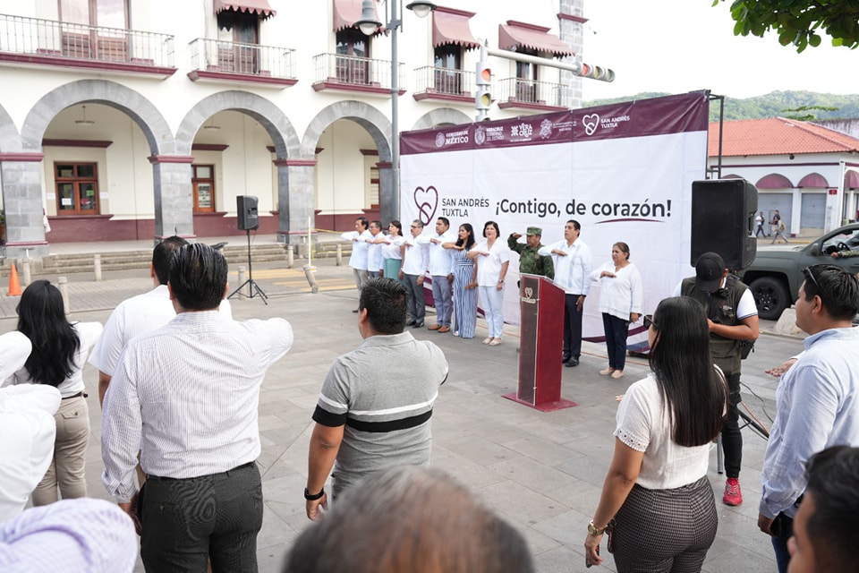 San Andrés Tuxtla, Ver.- Conmemorando el 130 aniversario de la elevación de San Andrés Tuxtla a la categoría de ciudad, este jueves, la Presidenta Municipal María Elena Solana Calzada encabezó la ceremonia cívica con izamiento de bandera y la participación del cronista de la ciudad, en la que se dio lectura al documento fechado el 26 de octubre de 1893 donde por decreto de la legislatura local promulgado por el entonces gobernador del Estado, Teodoro Dehesa, se hizo efectivo el reconocimiento de la villa de San Andrés Tuxtla como ciudad.