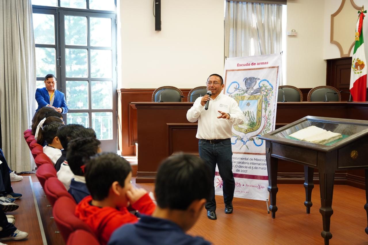 Xalapa, Ver.- En cercanía, con respeto y aprendizaje mutuo, el Ayuntamiento de Xalapa realizó la Jornada Cívica: Memoria y Ciudadanía. Patrimonio y Gobierno Municipal, un ejercicio formativo que permitió a niñas y niños de la Escuela Primaria Hugo Topf conocer de cerca el funcionamiento del gobierno municipal y, sobre todo, dialogar directamente con sus autoridades.