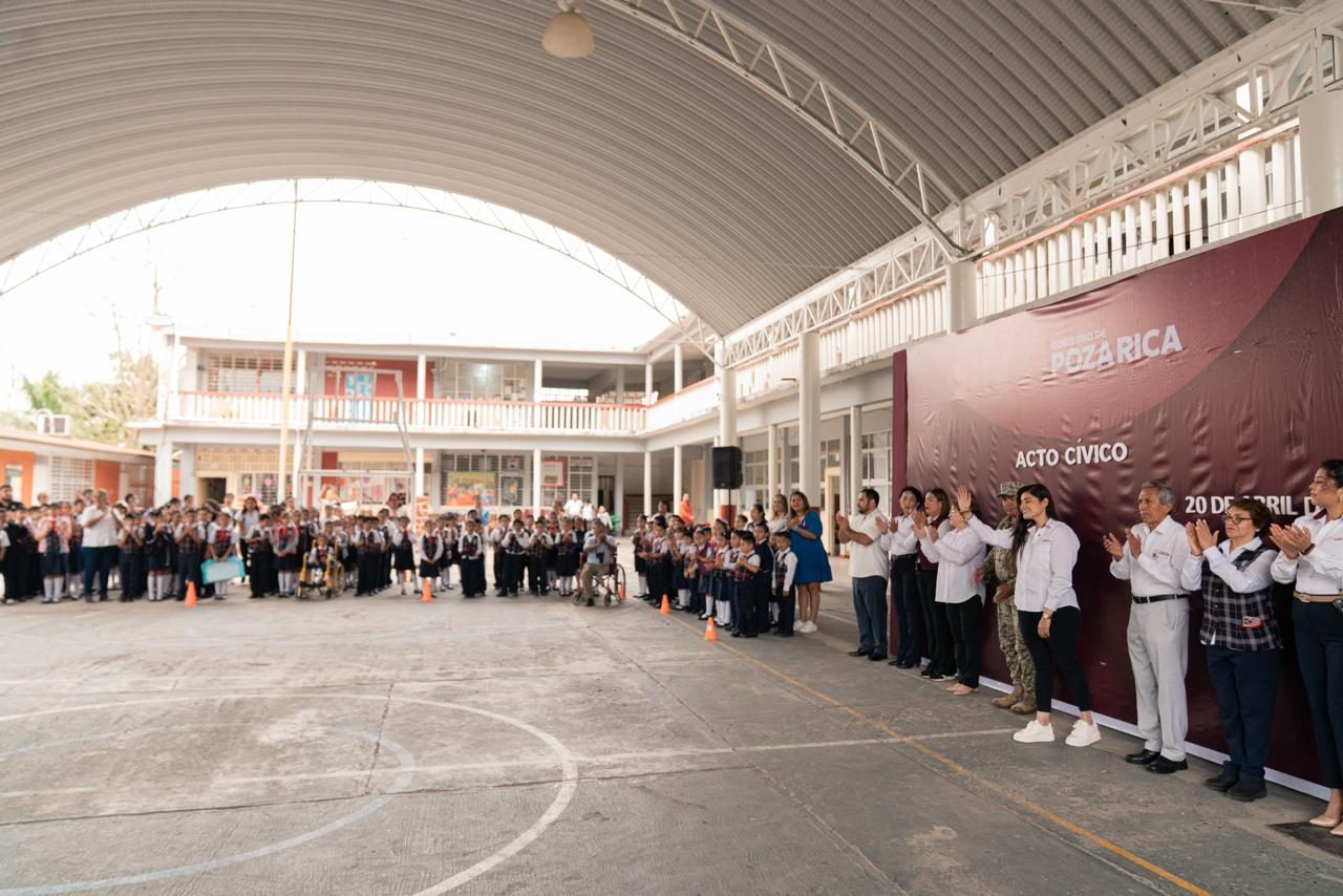Asimismo, destacó que el presente y futuro de Poza Rica se construyen a través de la educación y el ejemplo, promoviendo en las nuevas generaciones valores como la honestidad, el respeto, la responsabilidad y el amor por su comunidad.