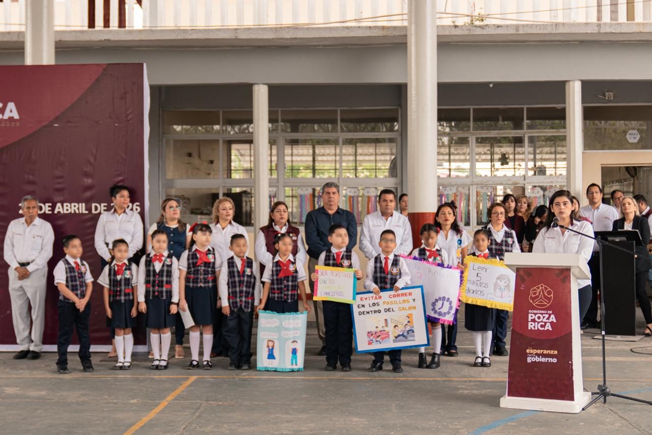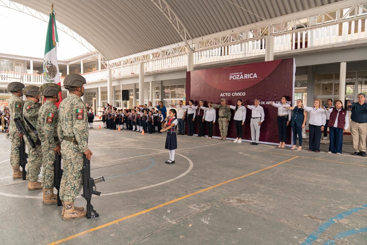 Poza Rica, Ver.– El Gobierno de Poza Rica, a través de la Dirección de Educación, llevó a cabo un acto cívico en la Escuela Primaria Estatal “Enrique C. Rébsamen”, con el propósito de fortalecer los valores patrios y fomentar el sentido de identidad y pertenencia entre la comunidad estudiantil.