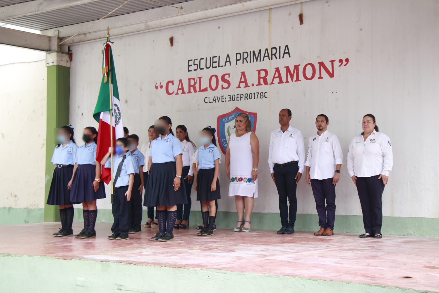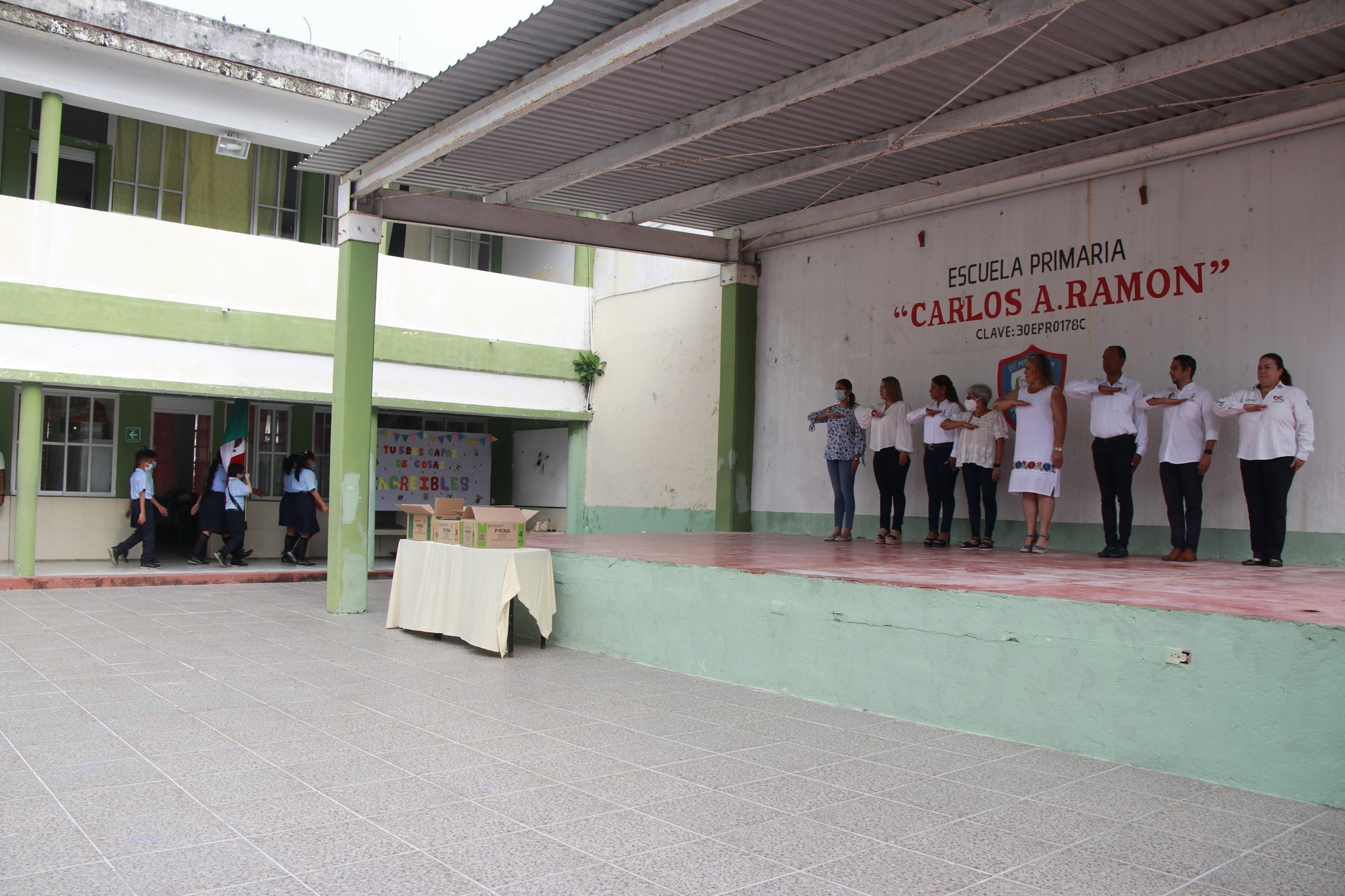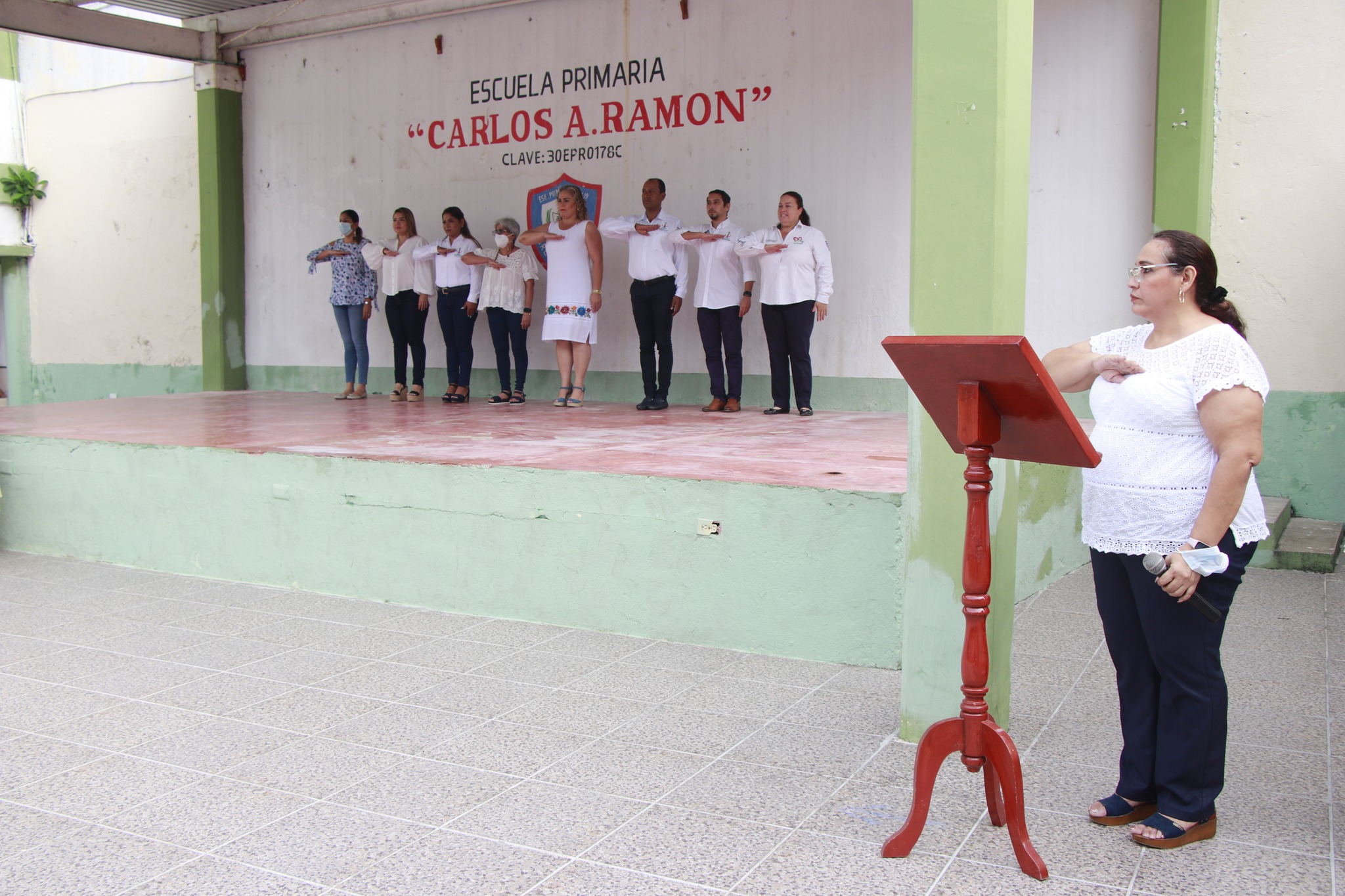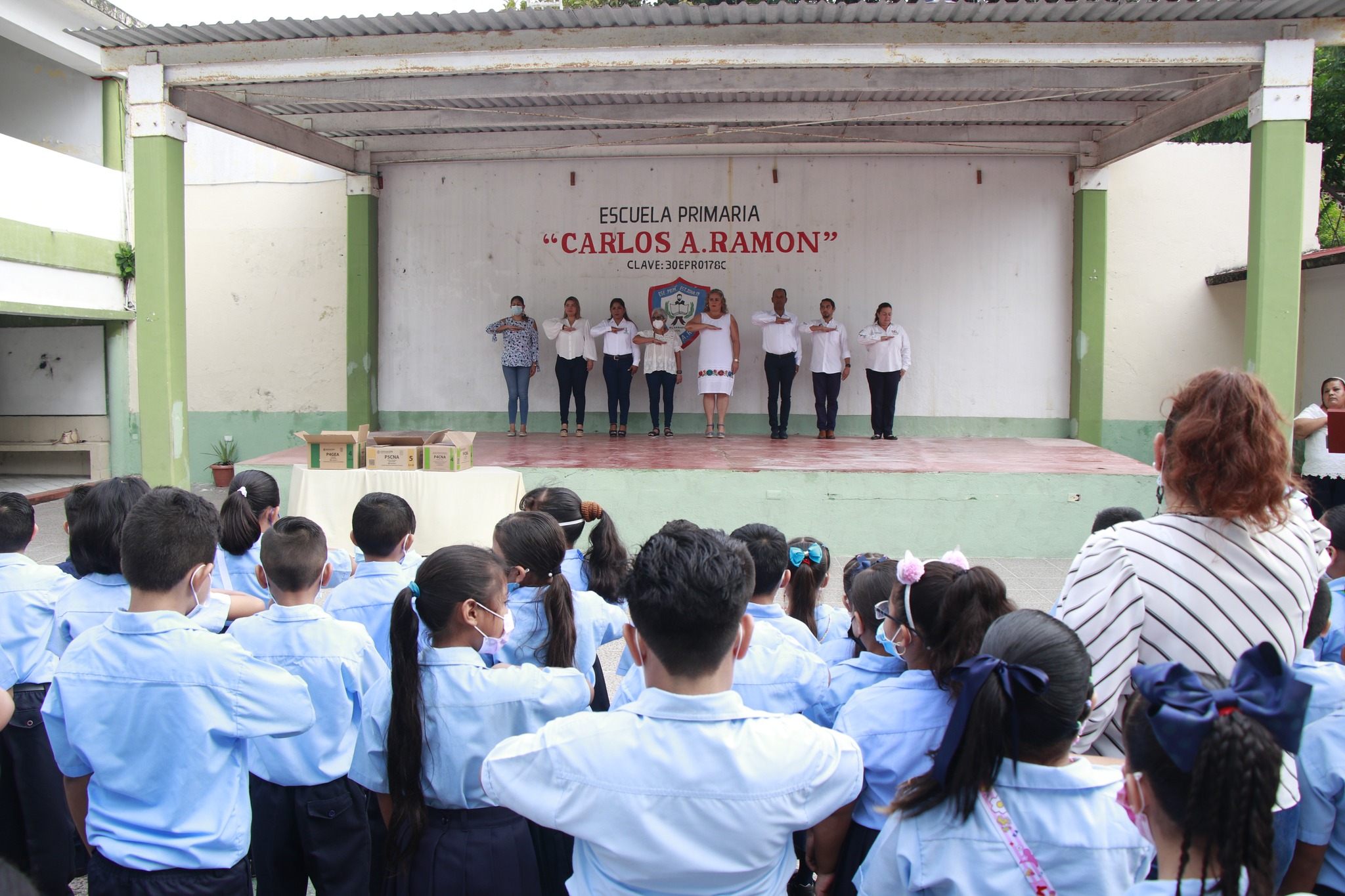 Alvarado, Ver.- Este lunes se realizó el homenaje de cada semana a nuestros símbolos nacionales en la escuela “Carlos A. Ramón”, primera institución educativa del municipio fundada en 1736, que ha sido testigo del devenir histórico de nuestro querido Alvarado.