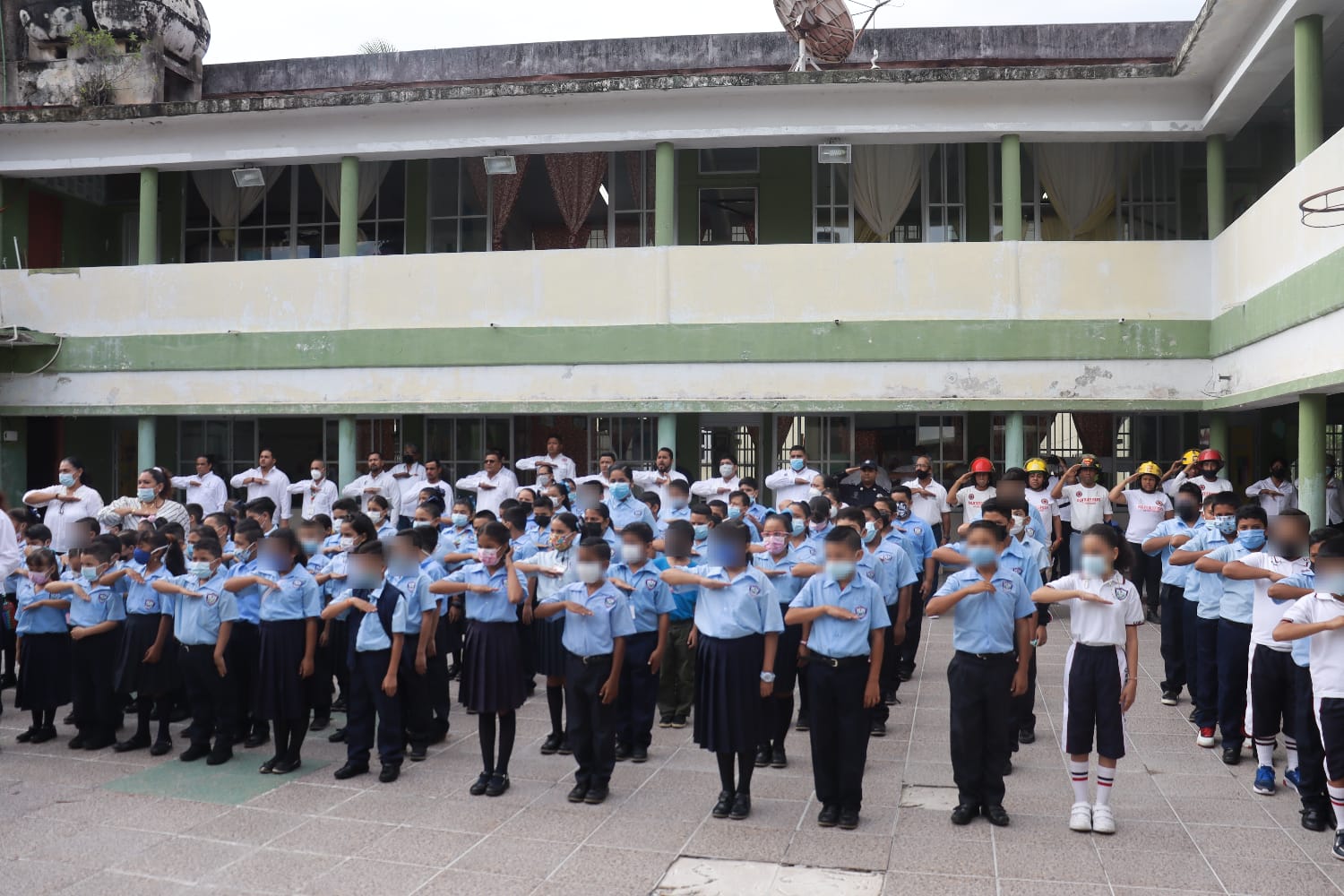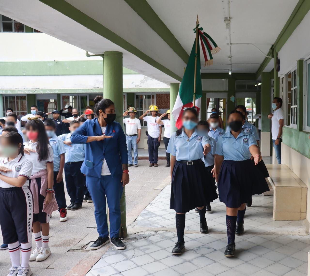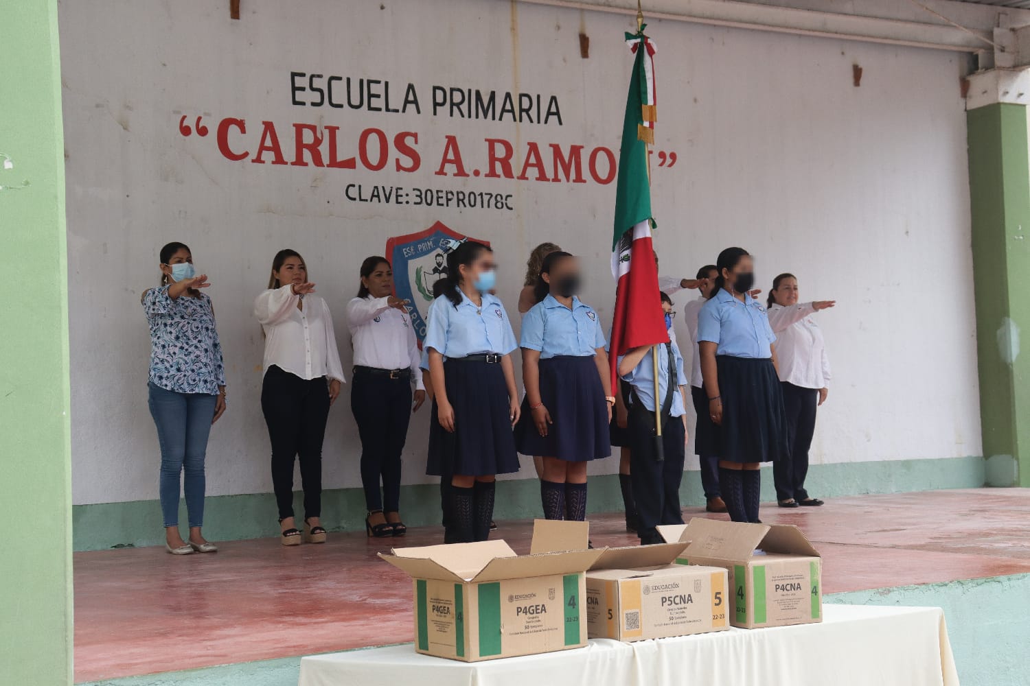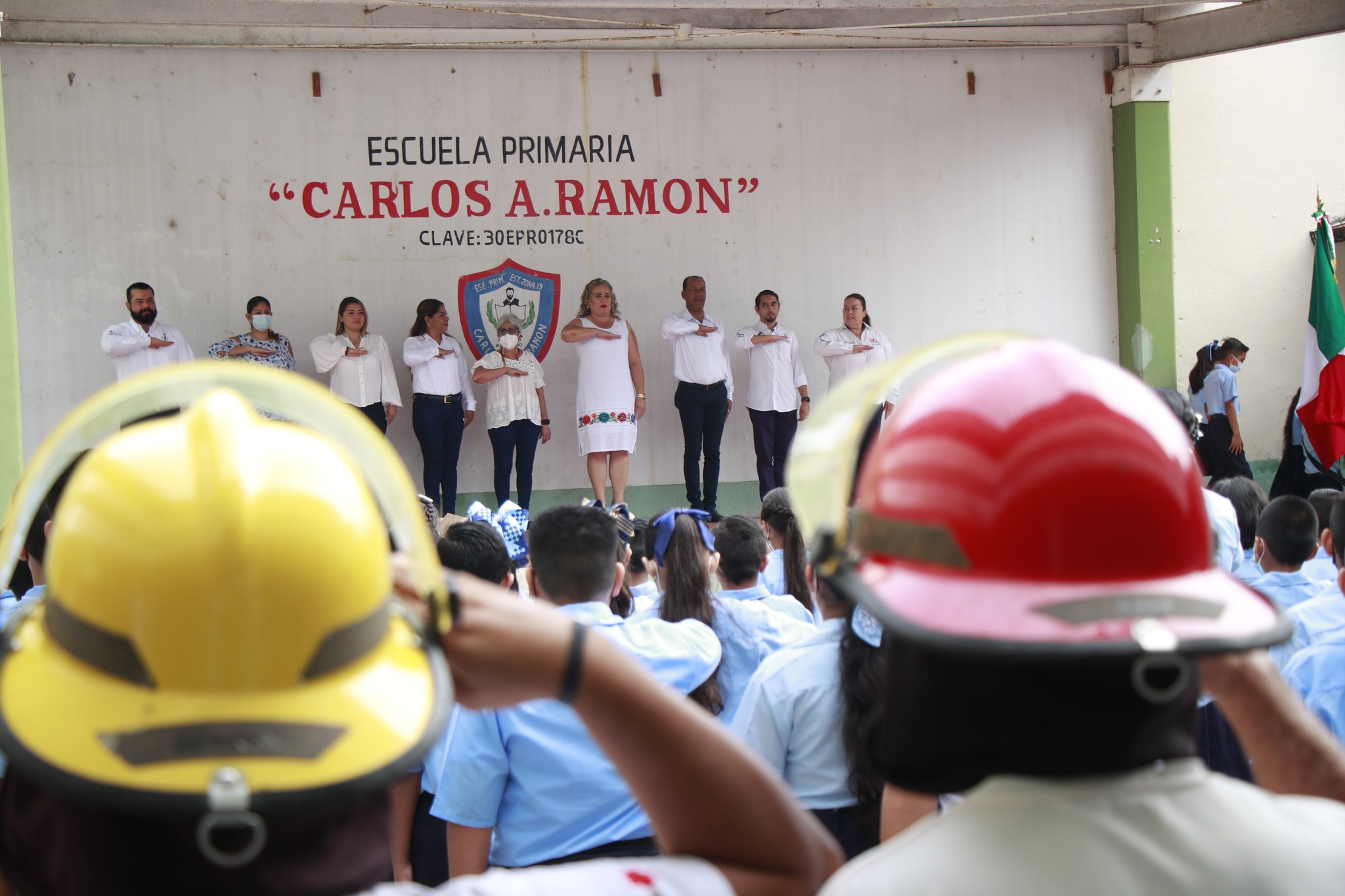 Alvarado, Ver.- Este lunes se realizó el homenaje de cada semana a nuestros símbolos nacionales en la escuela “Carlos A. Ramón”, primera institución educativa del municipio fundada en 1736, que ha sido testigo del devenir histórico de nuestro querido Alvarado.