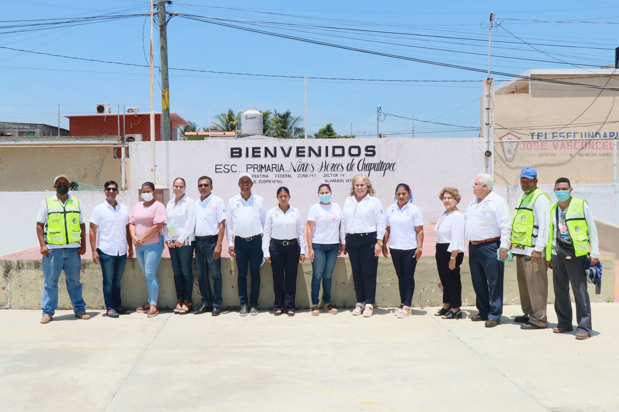 Alvarado, Ver.- La educación es parte importante para nuestro gobierno, es por ello que la alcaldesa de Alvarado, Lizzette Álvarez Vera, regidores, directores y personal del ayuntamiento, asistieron a la escuela primaria “Niños Héroes de Chapultepec” vespertina de la colonia Paso Nacional, con la finalidad de atender las necesidades de este plantel.