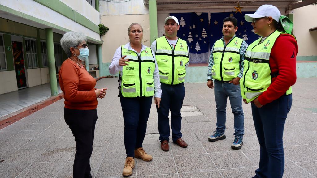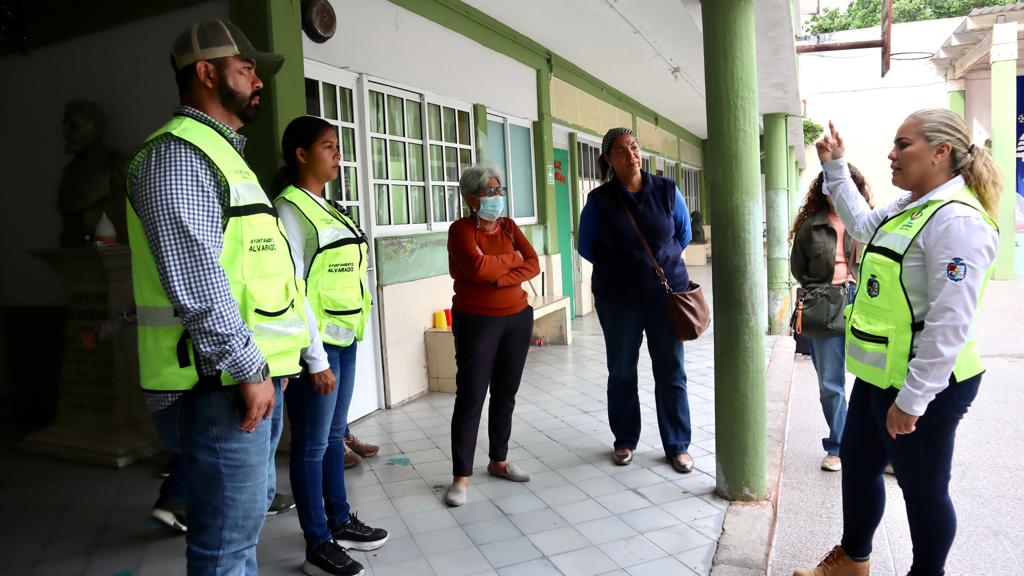 Alvarado, Ver.- La alcaldesa Lizzette Álvarez Vera visitó la emblemática Escuela Primaria “Carlos A. Ramón”, misma que recibió en este 2022 el beneficio de impermeabilización de losa, en coordinación con la institución educativa, se apoyará con aplicación de pintura.