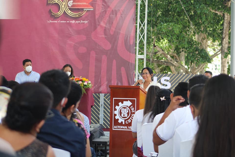 Actopan, Ver.- La presidenta municipal, María Esther López Callejas, estuvo presente en la conclusión de ciclo escolar en la escuela Secundaria General Emiliano Zapata y en la clausura de curso del CBTIS número 261 “C. P. Óscar Ponce”, ambas en la cabecera municipal.