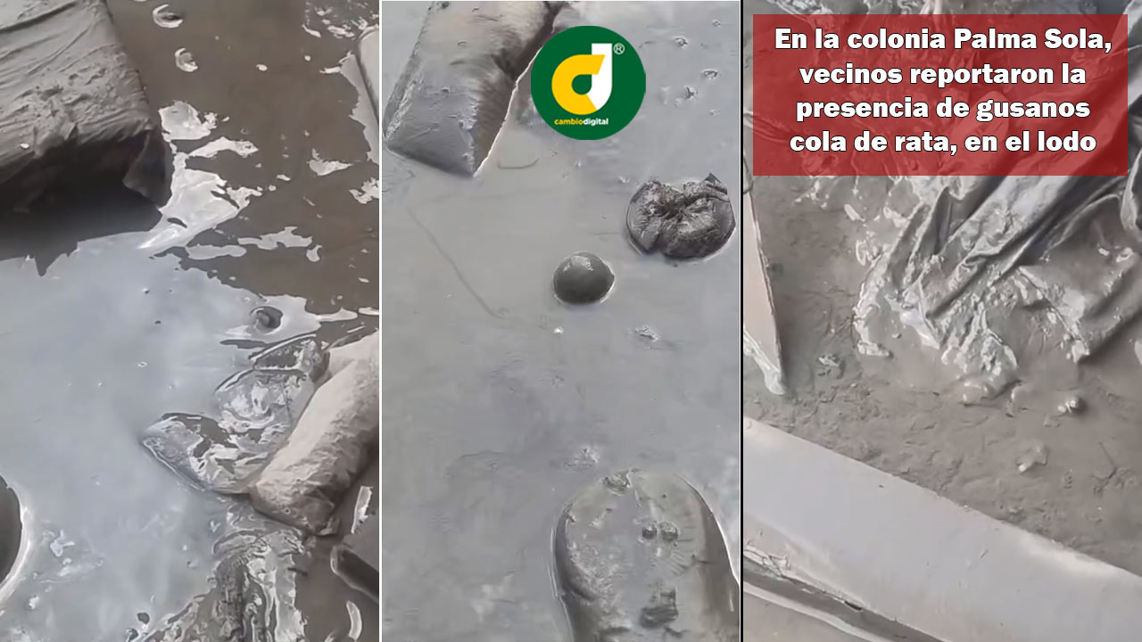 En colonias como Palma Sola vecinos reportaron la presencia de gusanos cola de rata, en el lodo que hay aún en varias calles.