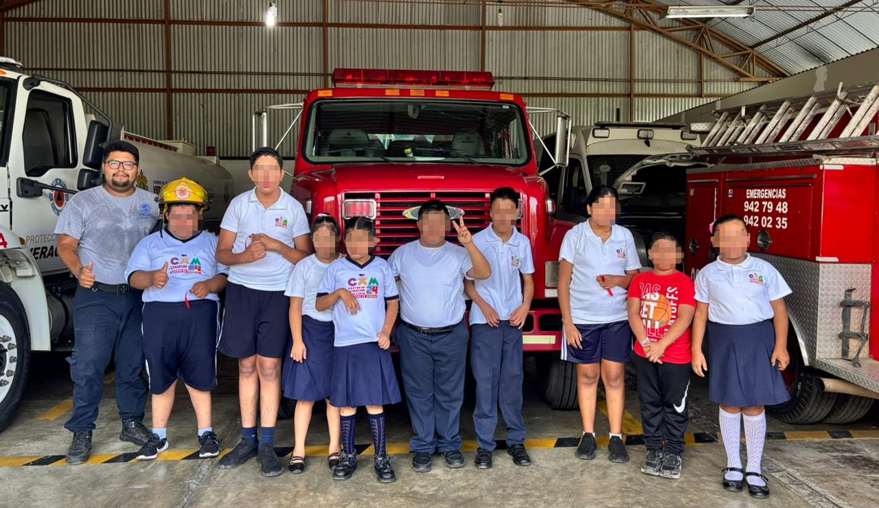 San Andrés Tuxtla, Ver.– Docentes y alumnos del Centro de Atención Múltiple Número 24 (CAM 24) de San Andrés Tuxtla, visitaron las instalaciones del Cuartel de Bomberos y Protección Civil, este viernes 6 de junio, en el marco de la Semana de Protección Civil. Ahí fueron recibidos por personal a cargo del Director Josué Ceja Espejo.