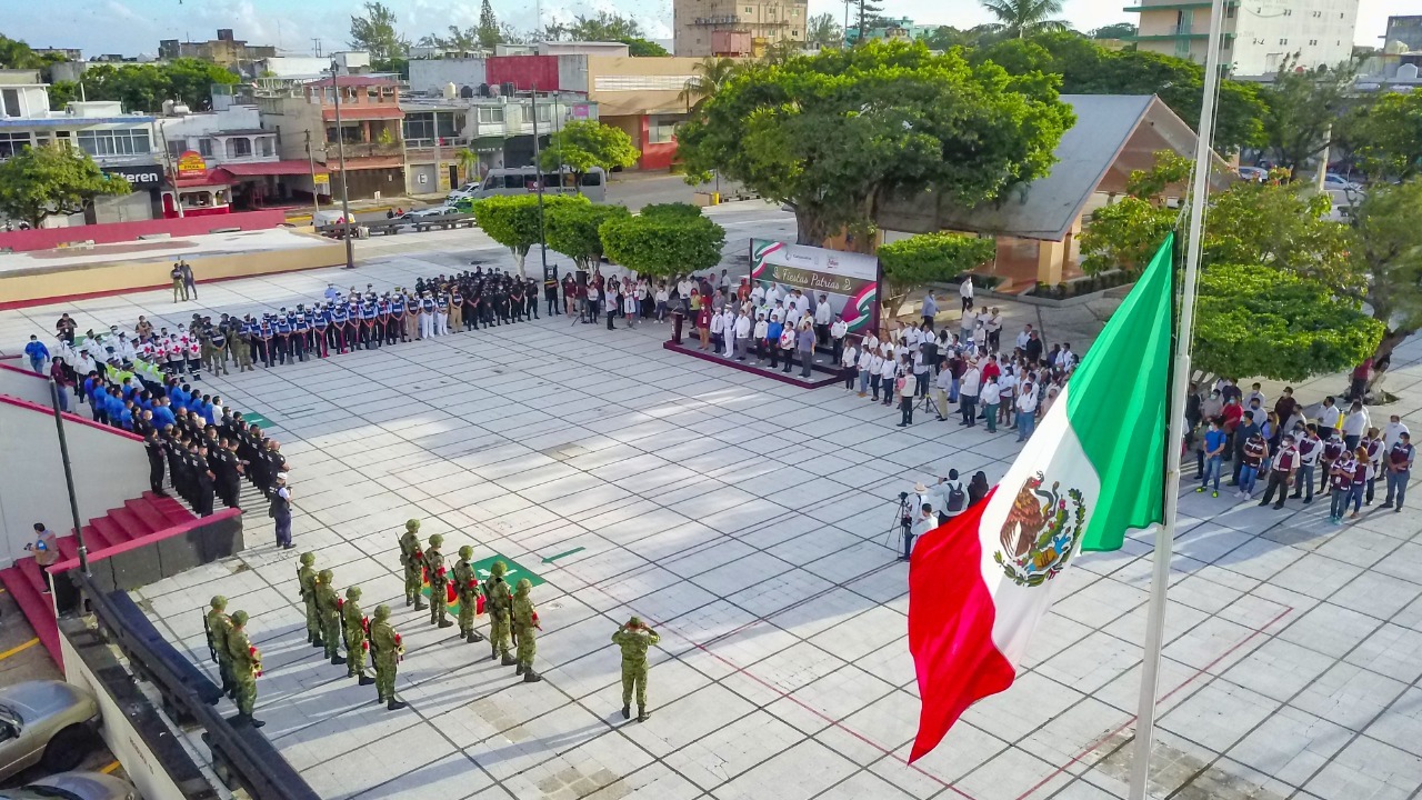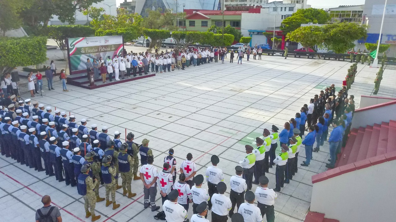Posteriormente, junto a Regidores, autoridades Municipales, Militares, Navales, Educativas, Transporte Público, Policía Vial, Policía Municipal, CLAM y Cruz Roja, rindió los honores a nuestro Lábaro Patrio y guardó un minuto de silencio por las víctimas de los terremotos de 1985 y de 2017.