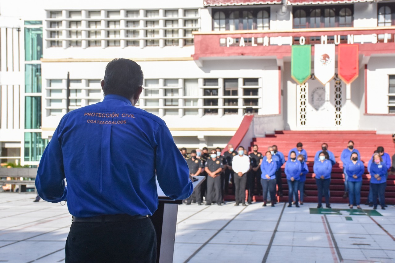Coatzacoalcos, Ver.- El presidente municipal, Amado Cruz Malpica, encabezó la conmemoración del 37 aniversario del Día Nacional de Protección Civil, donde destacó la importancia de la participación de la sociedad civil en coordinación con las instituciones en la prevención de desastres, de ahí la importancia de los simulacros.
