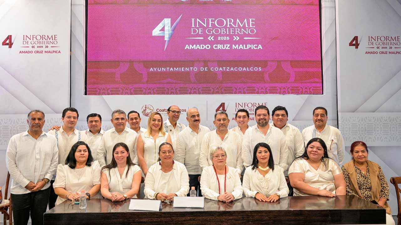 Coatzacoalcos, Ver.- En una solemne Sesión Pública de Cabildo celebrada en el complejo cultural ‘Chantli, La Casa del Pueblo’, el presidente de Coatzacoalcos, Amado Cruz Malpica, rindió su cuarto y último Informe de Gobierno, haciendo un recuento de los logros de su administración y asegurando que "hoy estamos más cerca de la ciudad que queremos todos".
