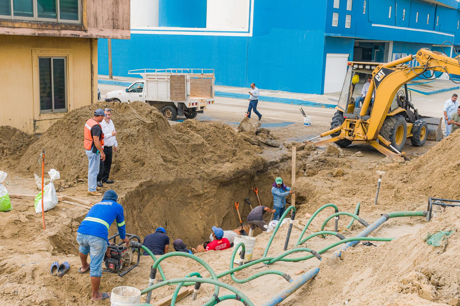 Amado Cruz supervisa rehabilitación de colector sanitario en la Puerto México