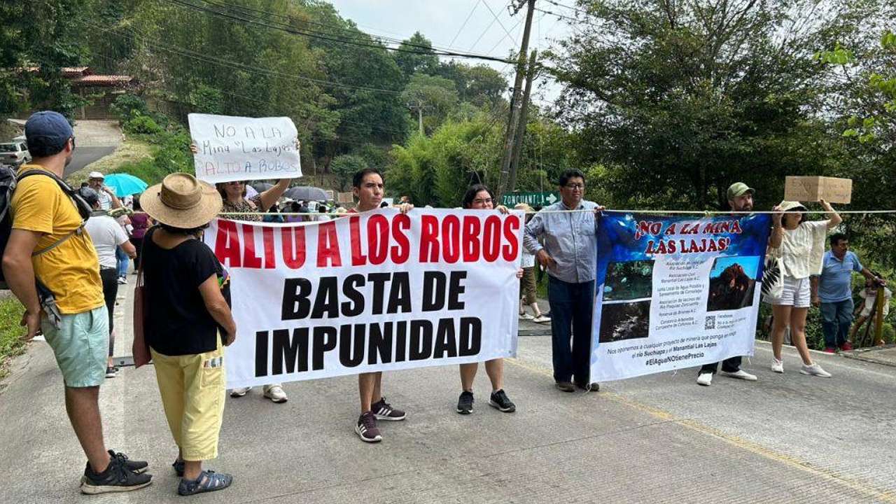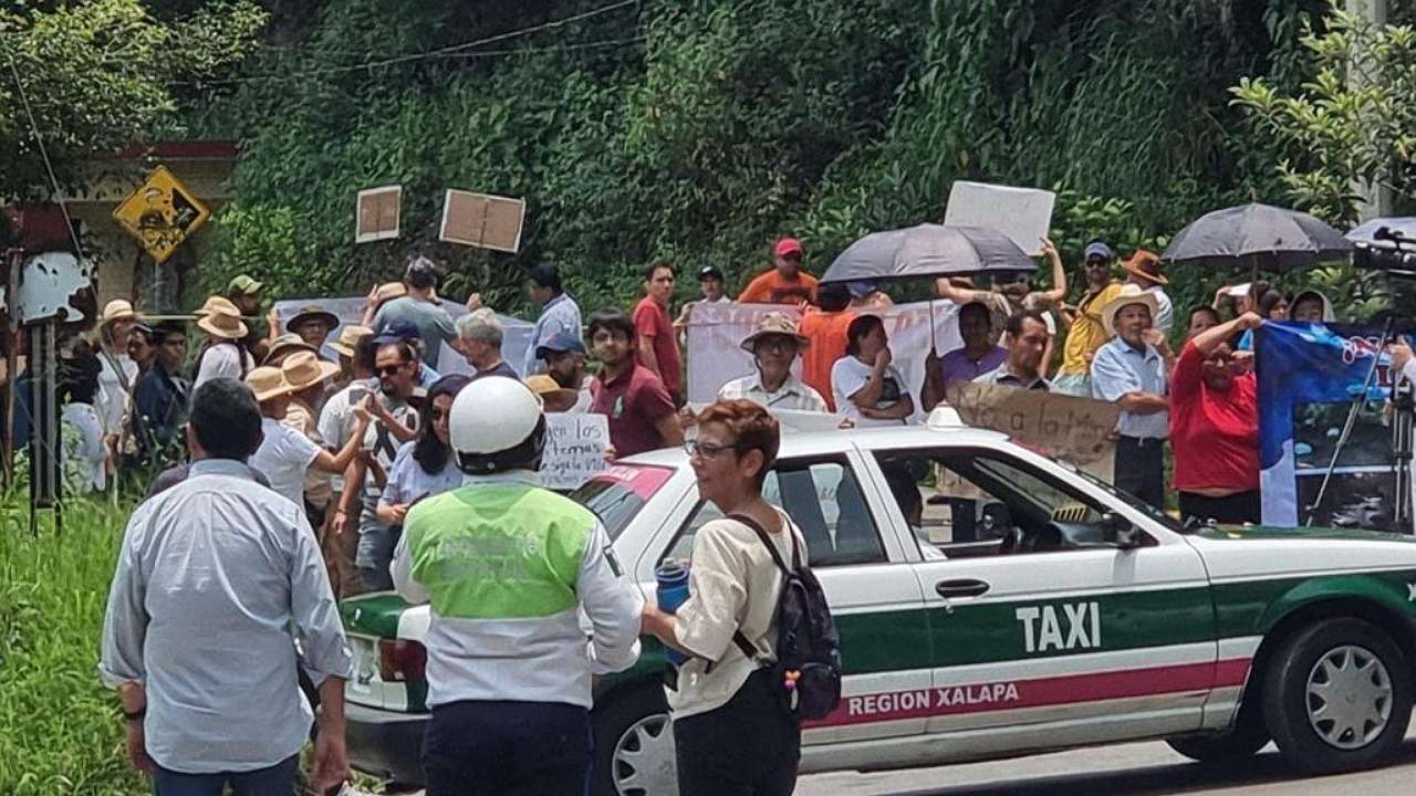 Los pobladores de diversas comunidades protestan y bloquean la carretera al Pueblo Mágico, en rechazo a la mina de grava de Chopantla, que pone en riesgo al manantial Las Lajas.