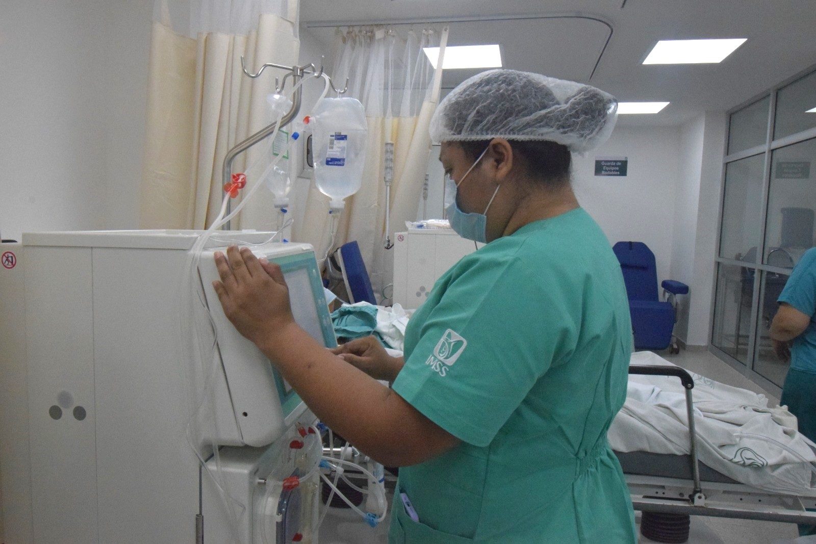 Poza Rica, Ver.- Con el objetivo de fortalecer la atención a pacientes que requieren esta terapia sustitutiva renal, el Hospital General de Zona (HGZ) No. 24 de Poza Rica, del Instituto Mexicano del Seguro Social (IMSS) en Veracruz Norte, incrementó su capacidad operativa en la Sala de Hemodiálisis, mediante la incorporación de 4 estaciones adicionales, uno de ellos reservado para serología viral positiva, alcanzando una totalidad de 11 máquinas en operación.
