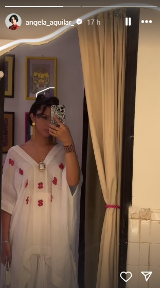 Hace apenas unas horas a través de unas fotos que compartió en sus historias de Instagram, Ángela Aguilar hizo que los rumores de un embarazo resurgieran esto después de que presumiera que estaba usando una medalla.