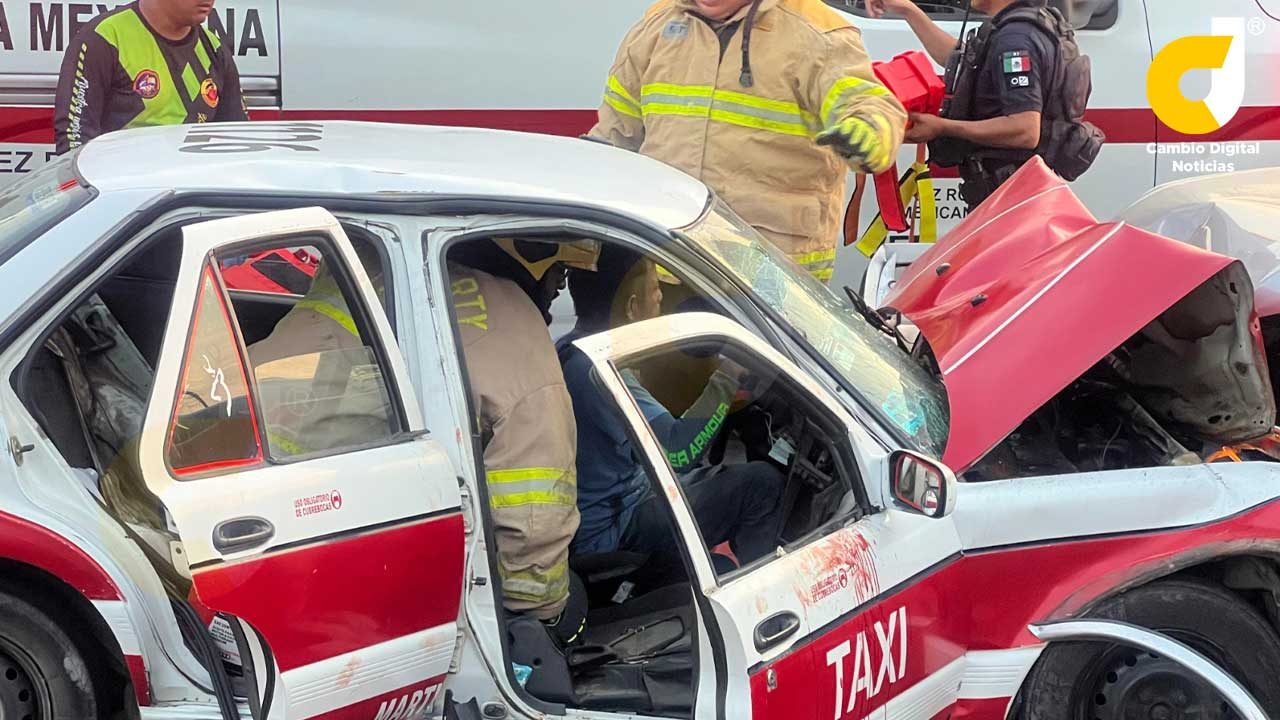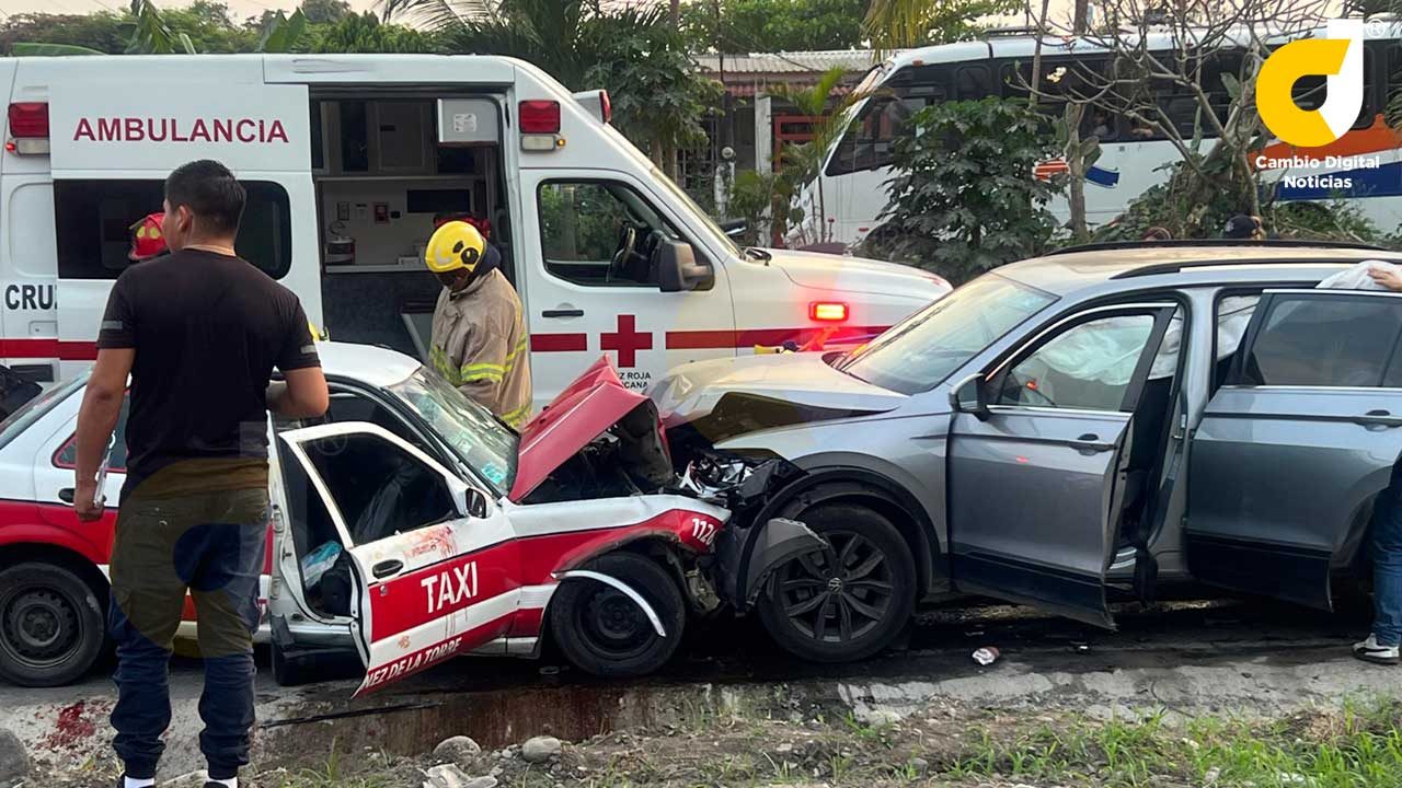 Martínez de la Torre, Ver.- La falta de precaución y exceso de velocidad ocasionaron un fuerte accidente entre una unidad de alquiler y una camioneta de lujo, dejando como saldo a varias personas lesionadas y cuantiosos daños materiales en este municipio citrícola.