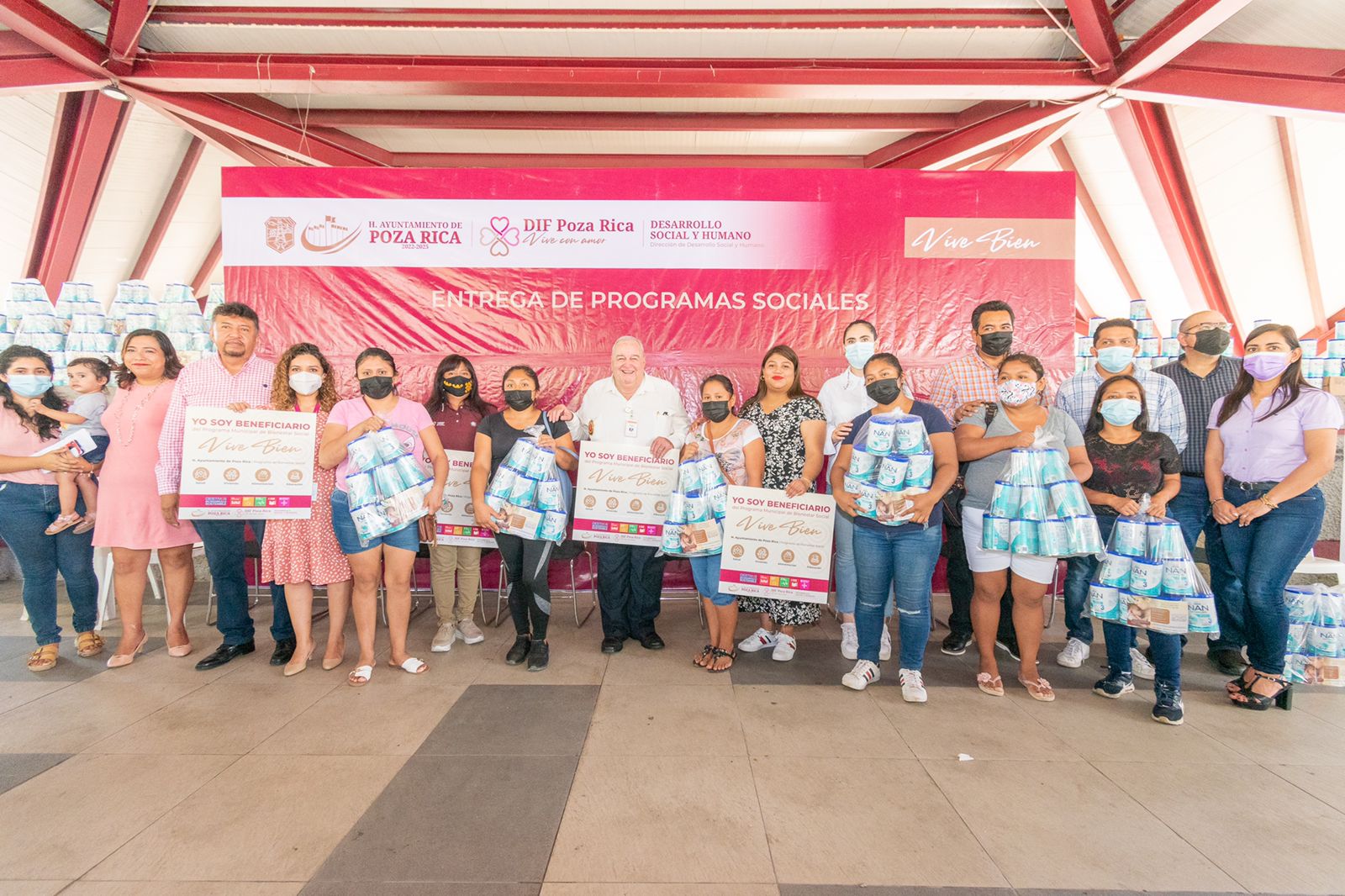 Poza Rica, Ver. – En apoyo a la economía de madres en situación vulnerable, autoridades municipales, encabezadas por el alcalde Fernando Remes Garza, hicieron entrega de dos mil latas de leche en polvo para menores de 1 a 3 años, como parte del programa municipal Vive Bien y en apego a los planes de desarrollo nacional, estatal y la Agenda 2030 de la ONU.
