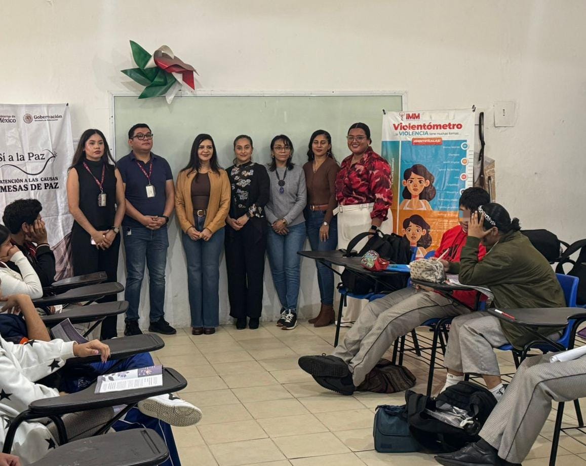 Durante las pláticas, se distribuyeron trípticos informativos y, mediante presentaciones audiovisuales, especialistas del IMM explicaron las distintas formas de violencia, utilizando herramientas como el Violentómetro para identificar y medir la gravedad de las agresiones.
