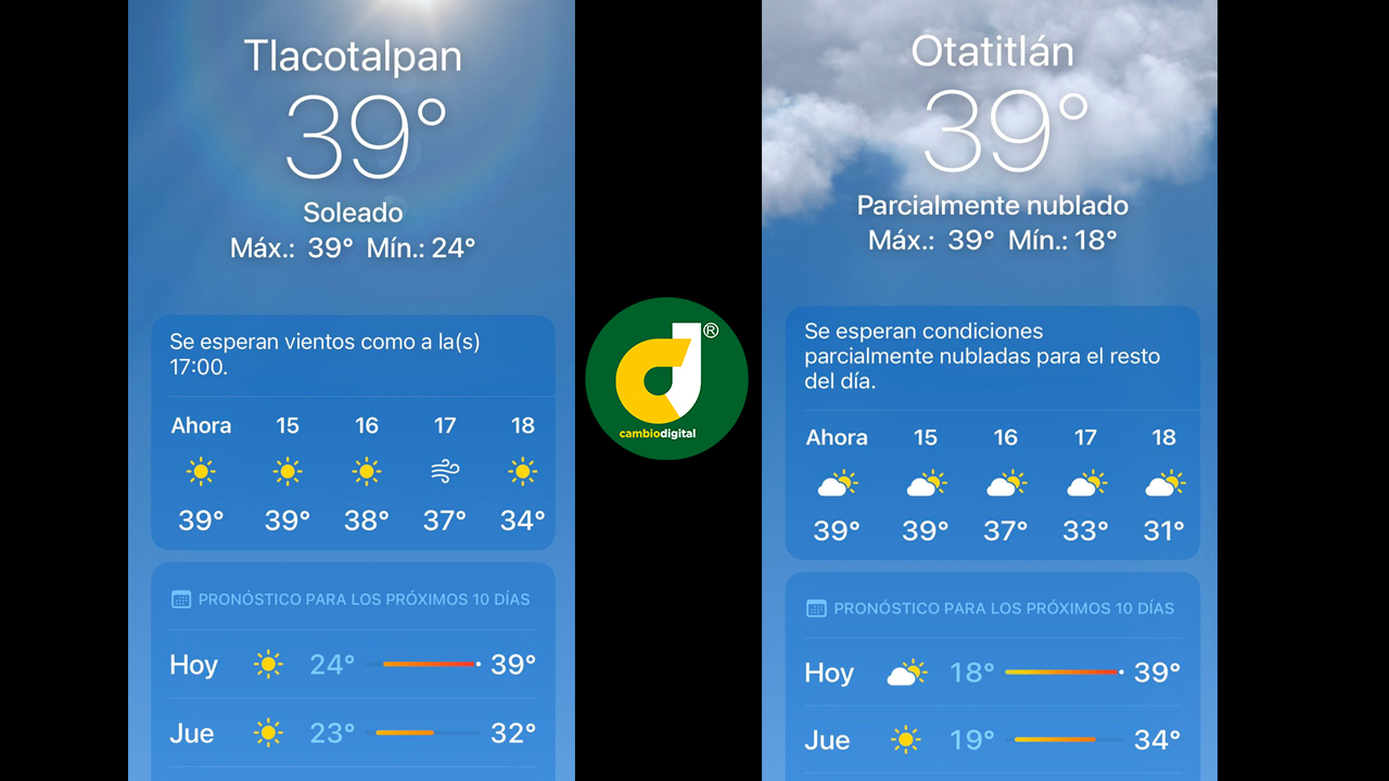 Por ejemplo, en Tlacotalpan se registró este miércoles una temperatura de 39 grados, al igual que Otatitlán.