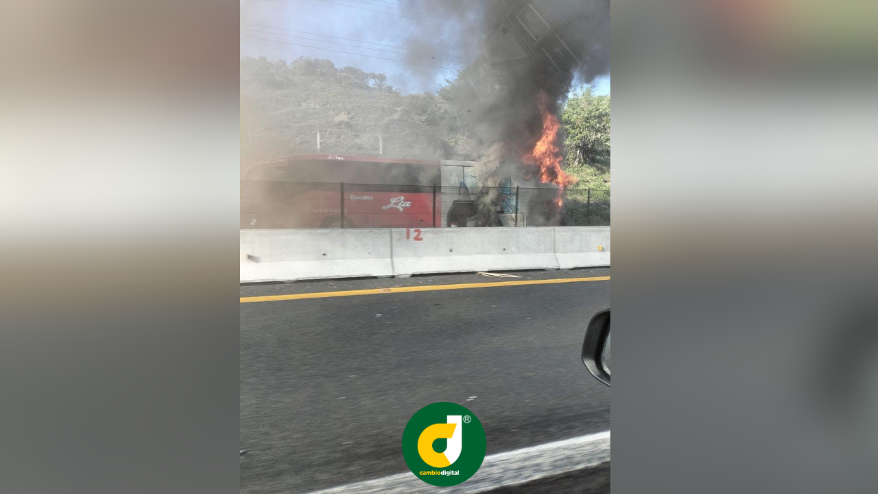 Este domingo en la autopista Veracruz-Cardel un autobús con 45 personas a bordo comenzó a incendiarse.